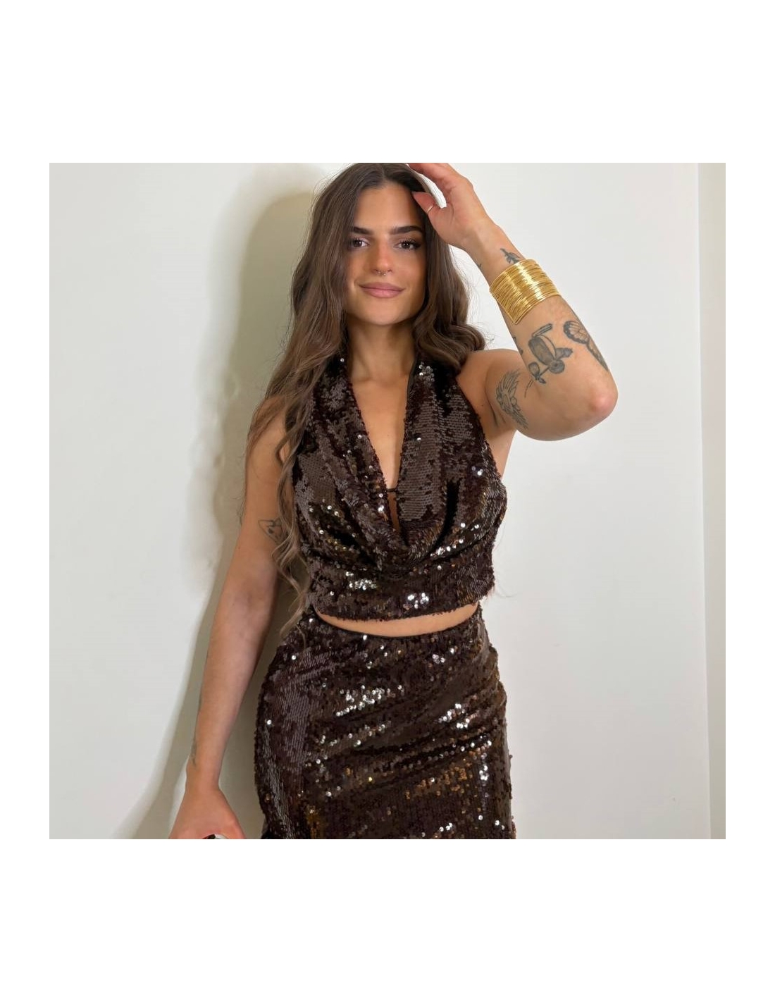 Top lentejuelas al cuello. Forro interior. Talla única.