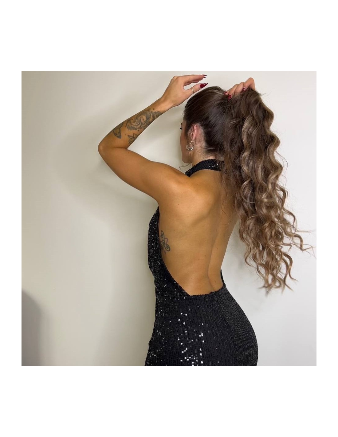 Vestido West de lentejuelas con escote. Forro interior. Talla única.