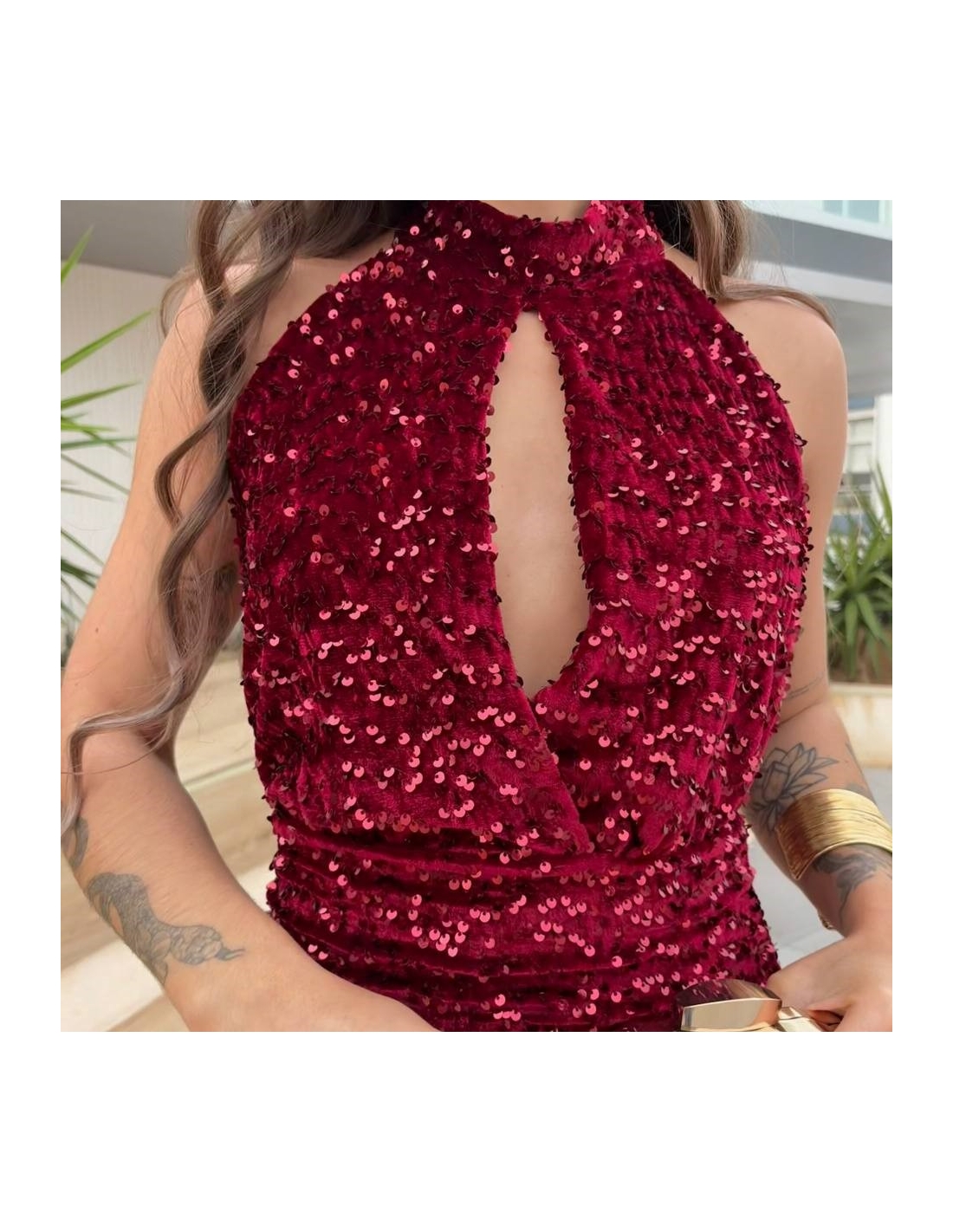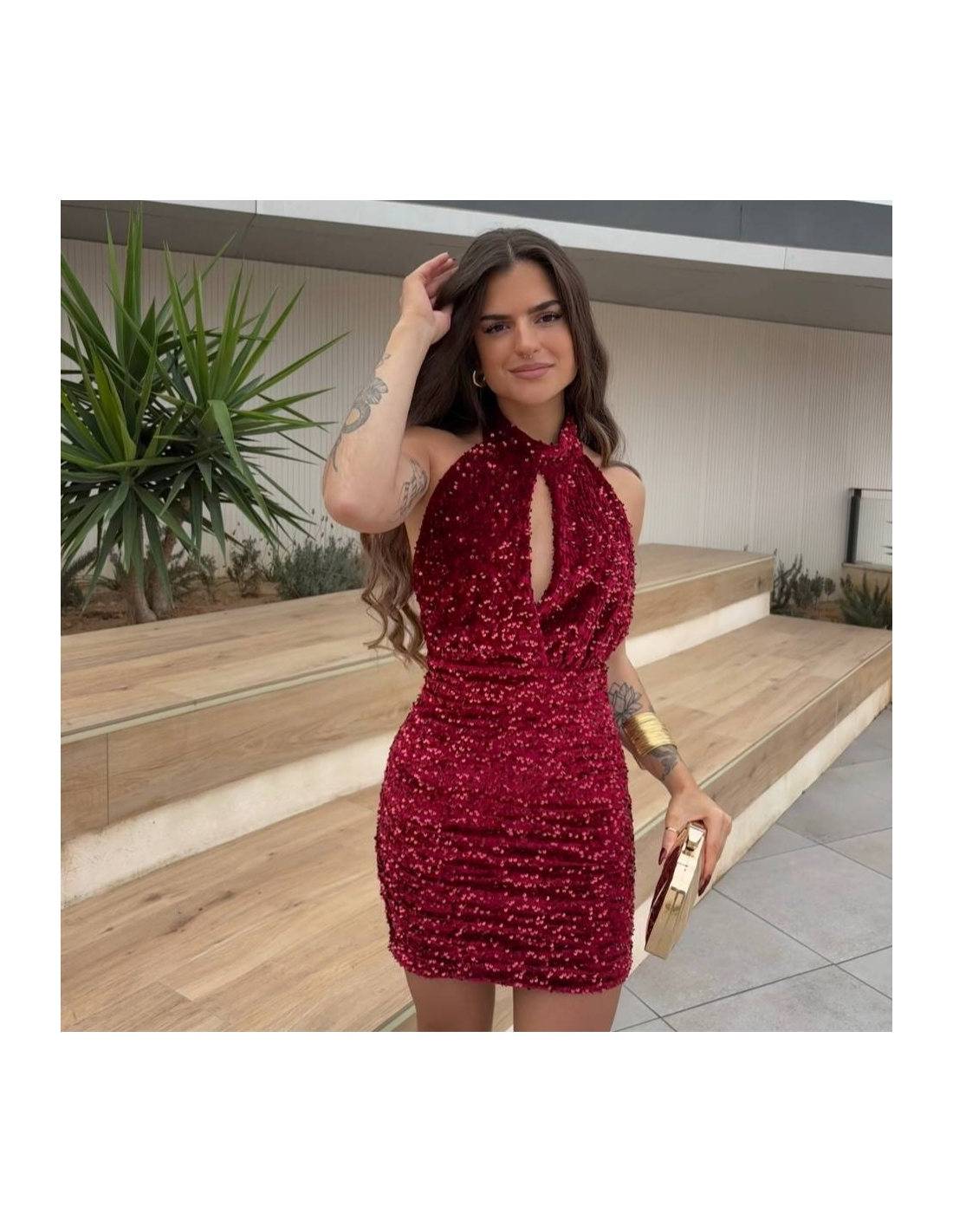 Vestido West de lentejuelas con escote. Forro interior. Talla única.