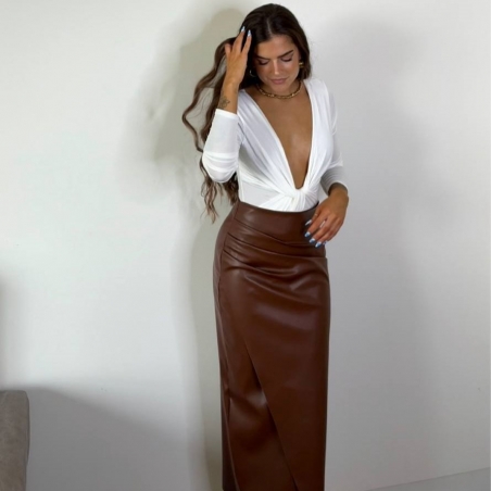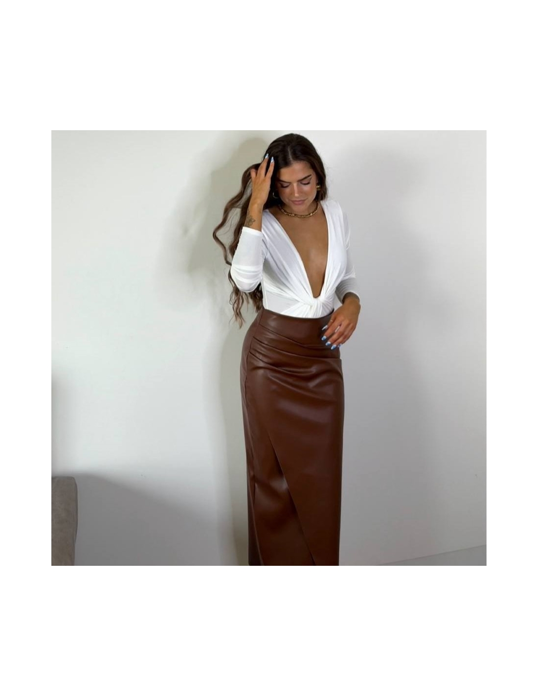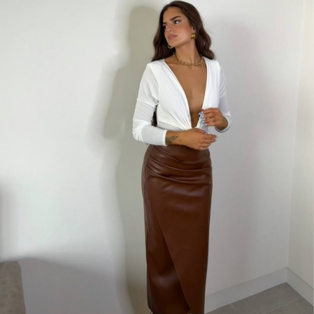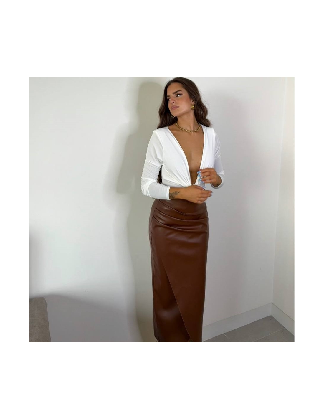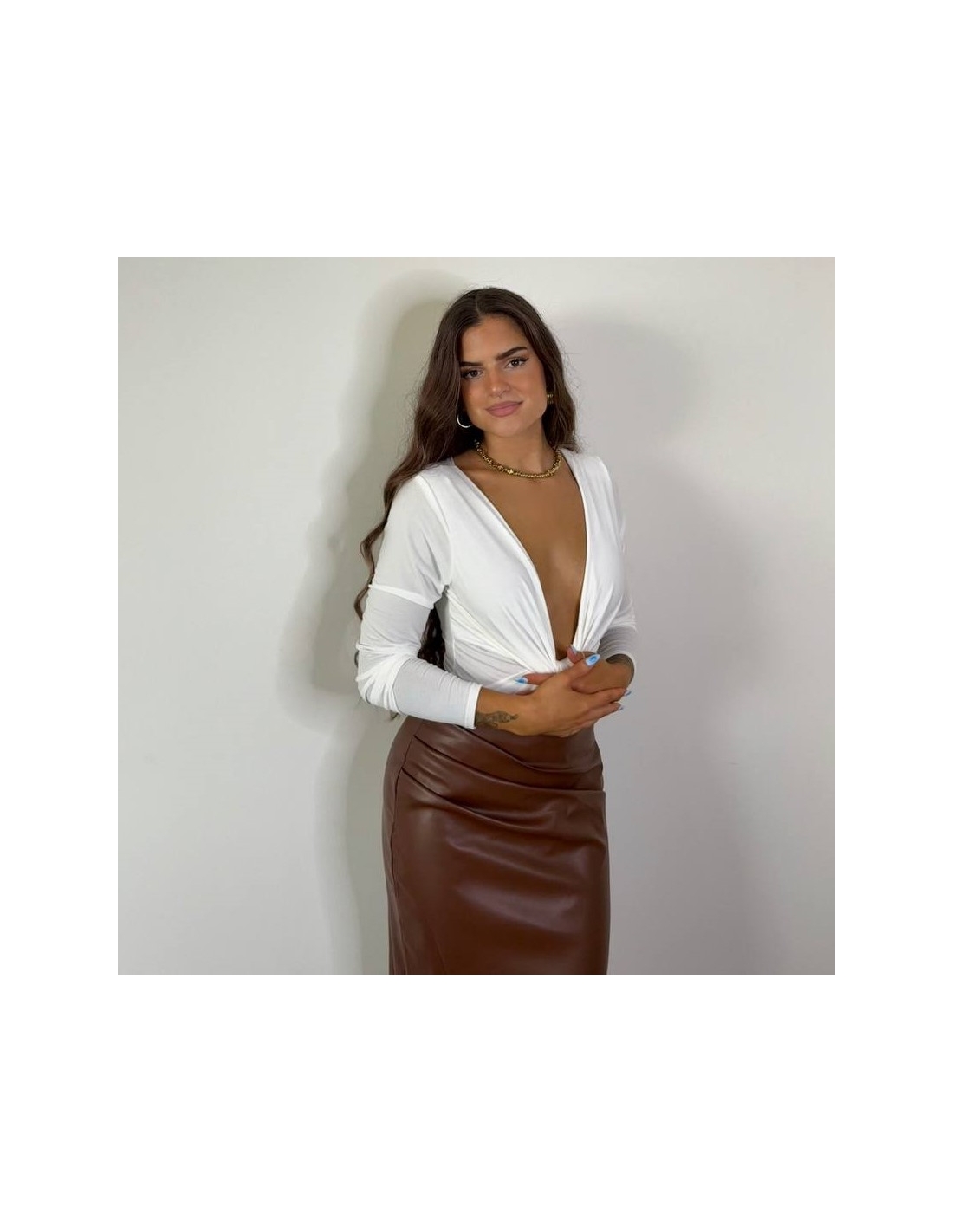 Body nudo en tono blanco. De manga larga. Fruncido en parte delantera. Talla única