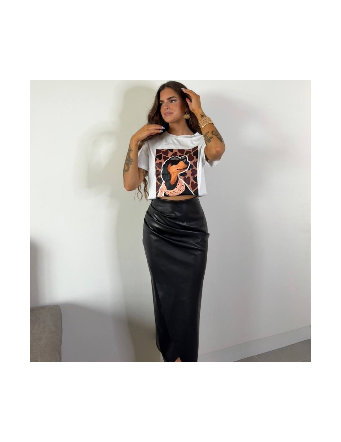 FALDA MIDI EFECTO PIEL NEGRA