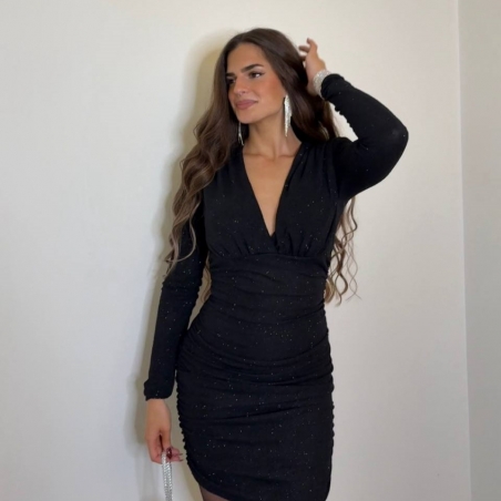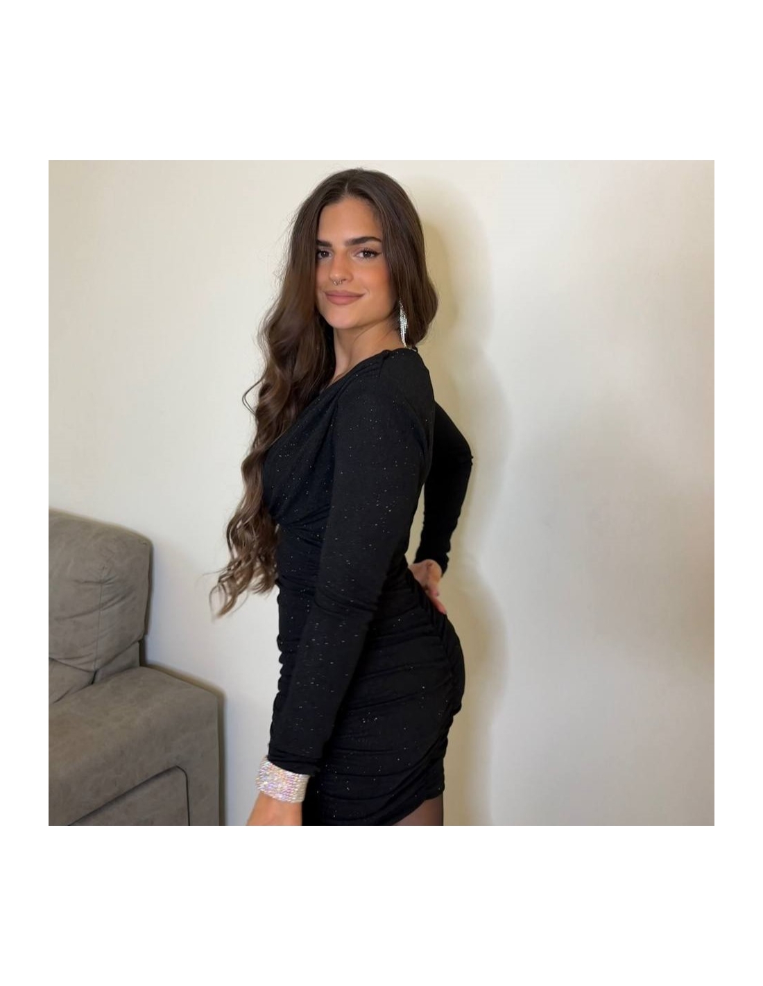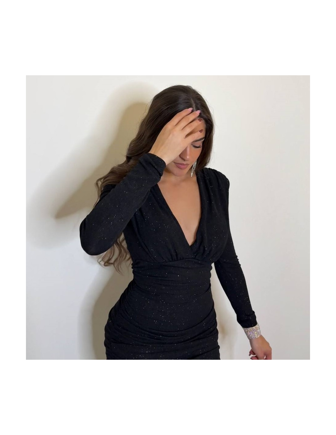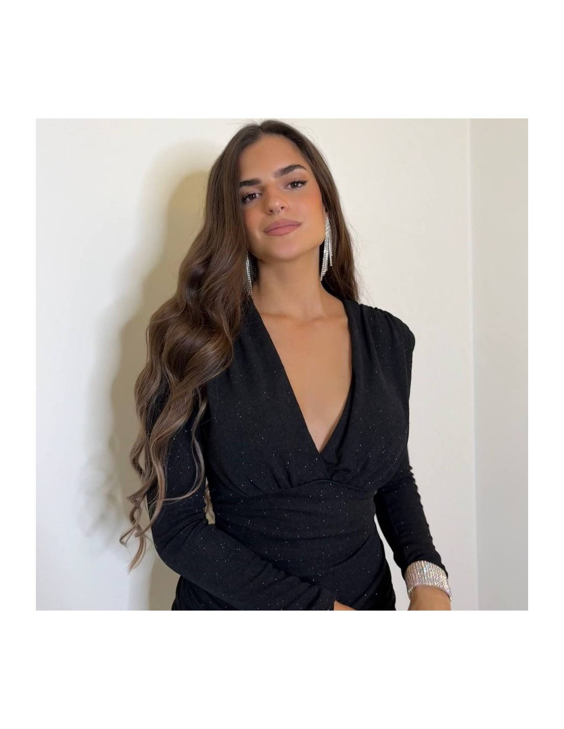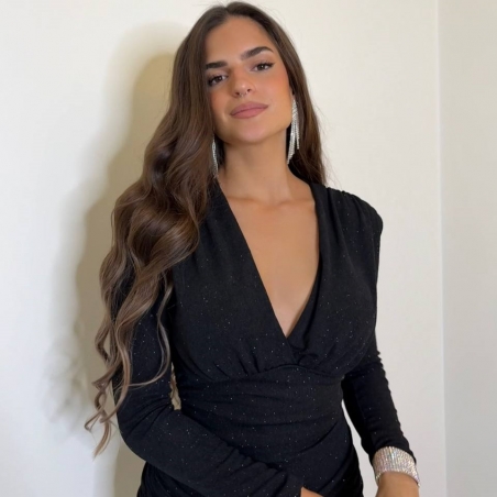 Vestido manga larga hombreras en tejido lurex. Talla única.