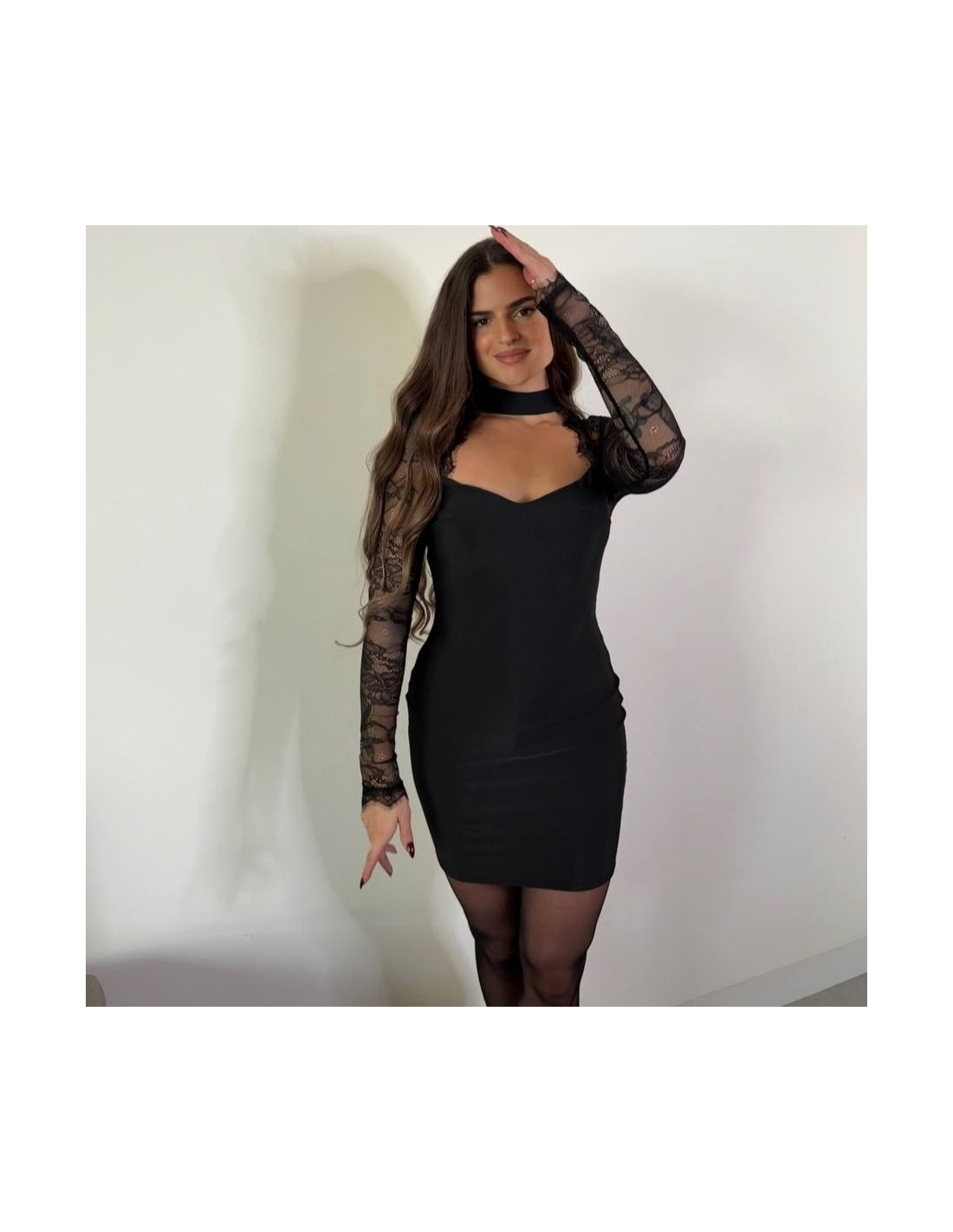VESTIDO MANGA ENCAJE NEGRO