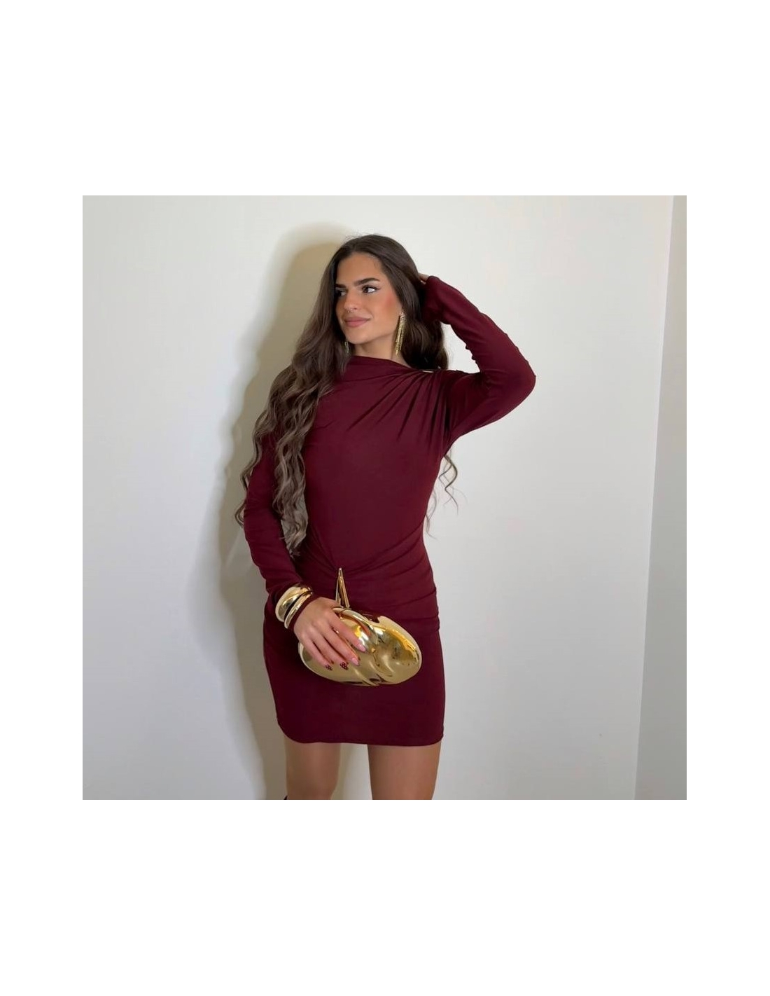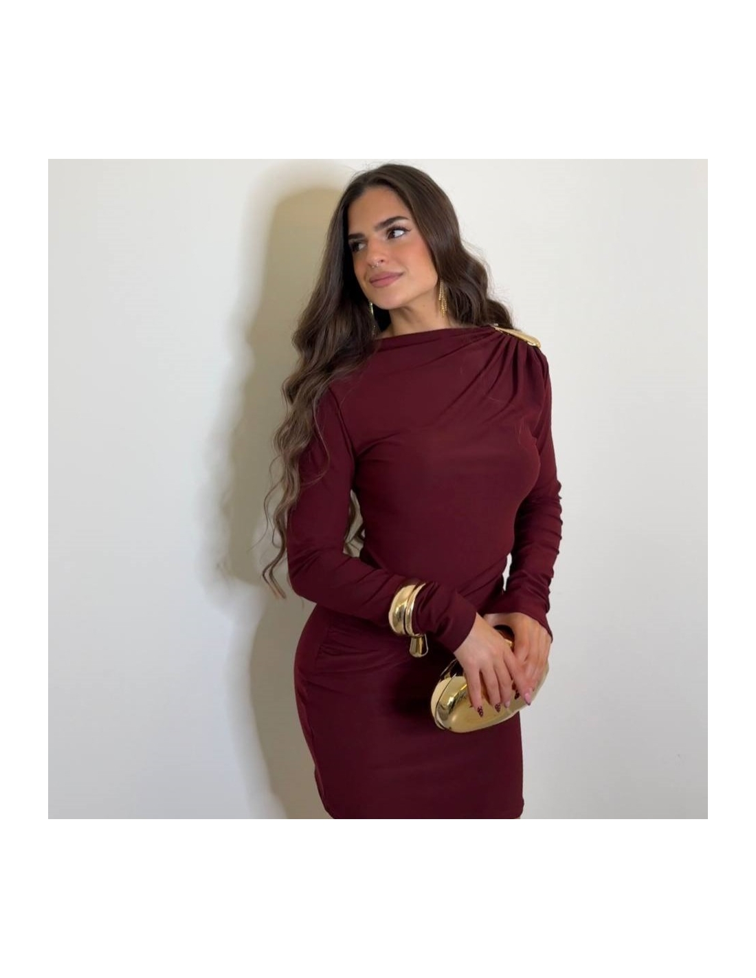 Vestido lágrima dorada. Fruncido delantero. De manga larga. Talla única.