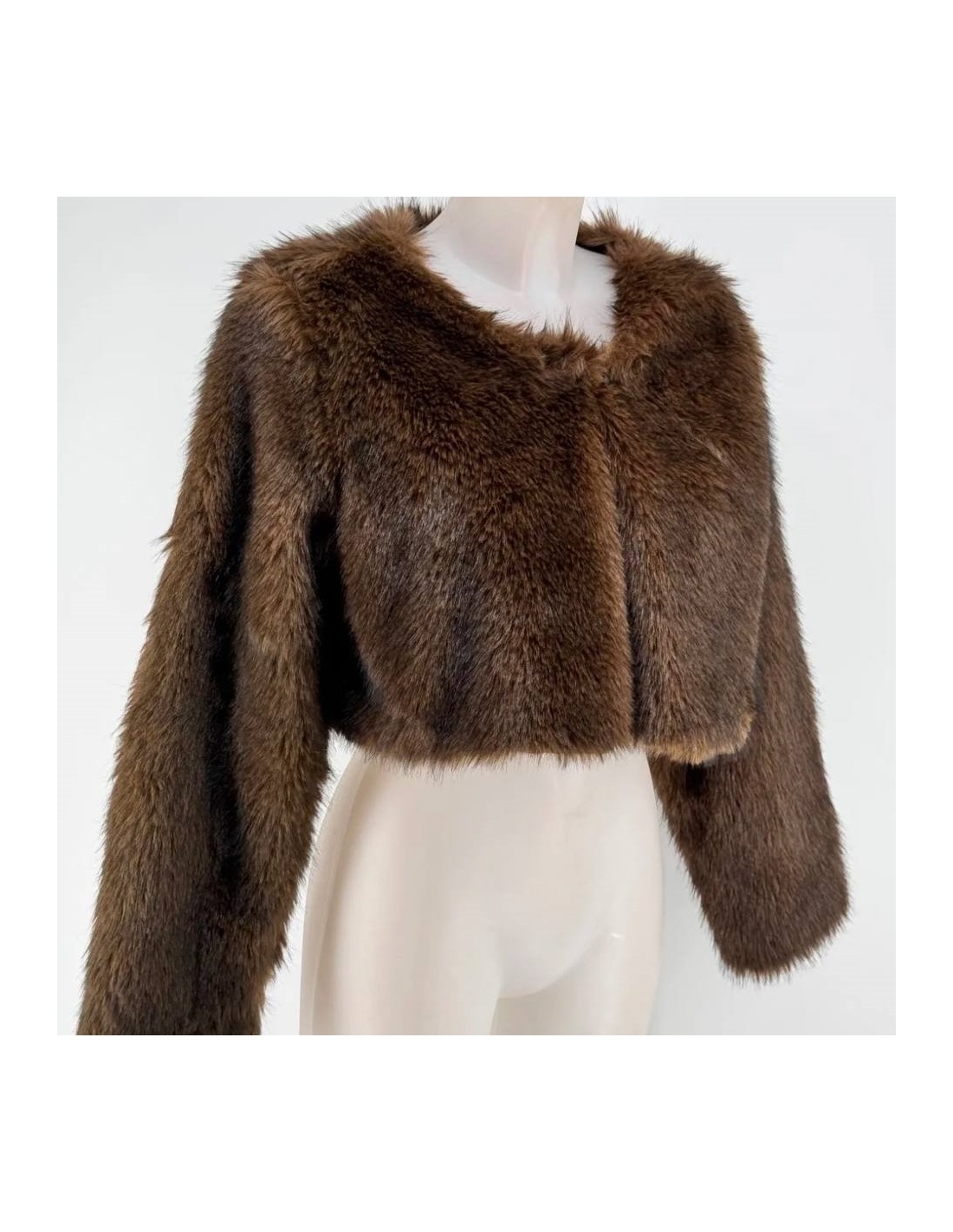 Abrigo pelito corto en tono choco. Con forro interior a tono. Cuello redondo. Talla única
