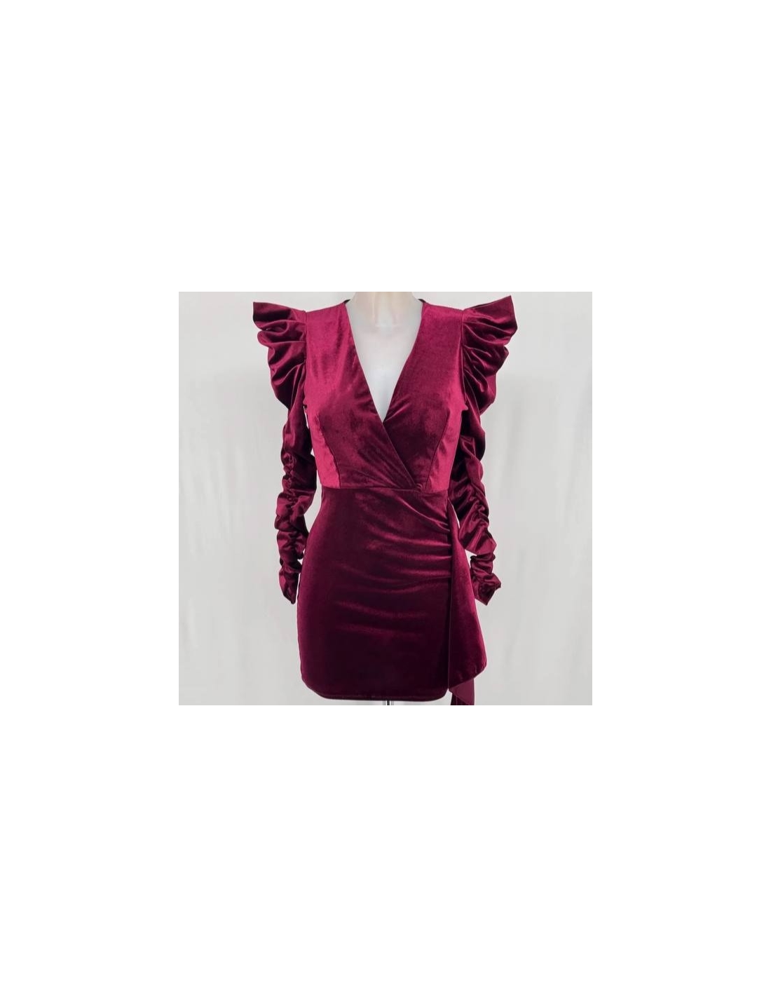 VESTIDO VELVET FRUNCIDO BURDEOS