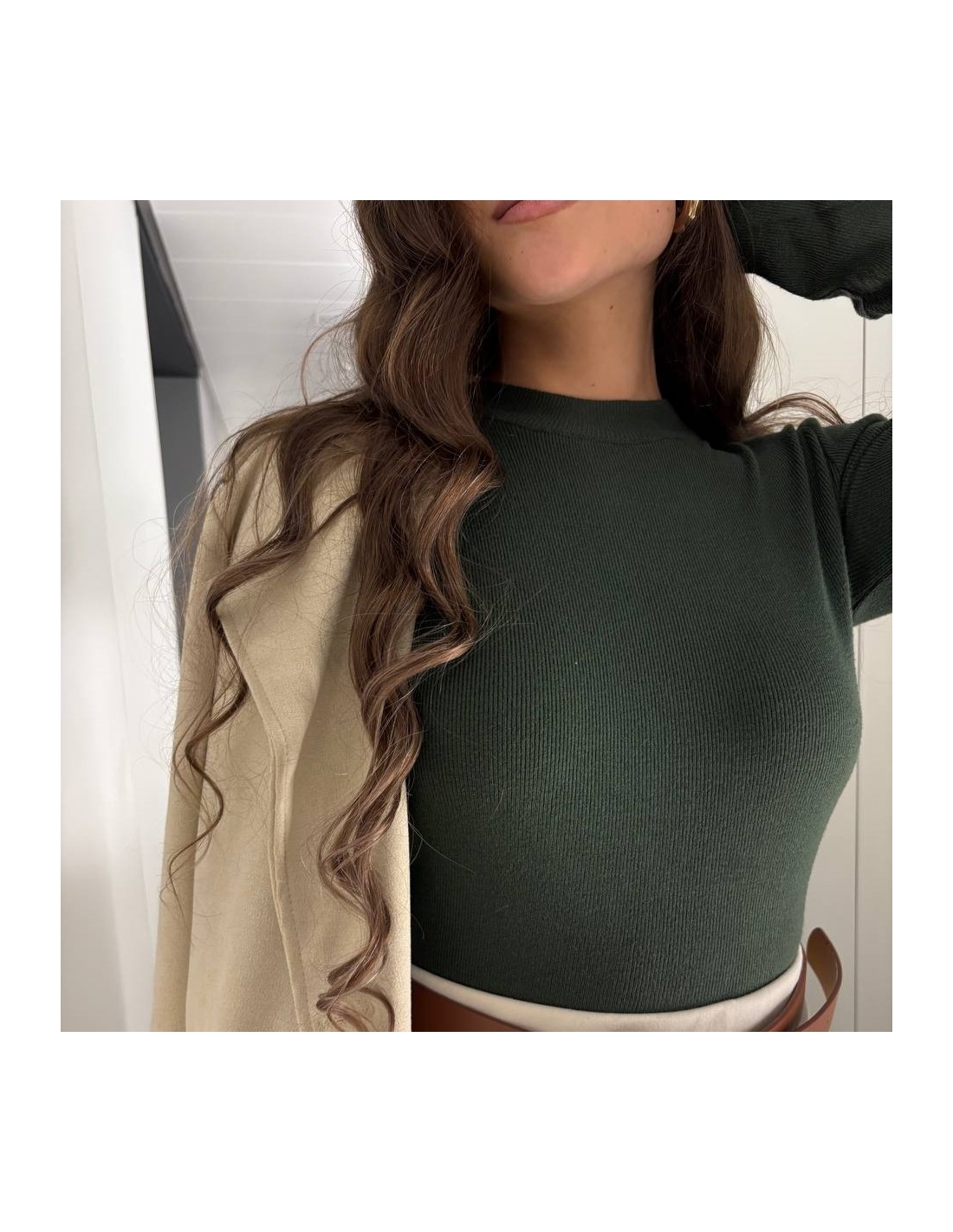 Jersey corto punto. Cuello redondo. De manga larga. Ajustado. Talla única