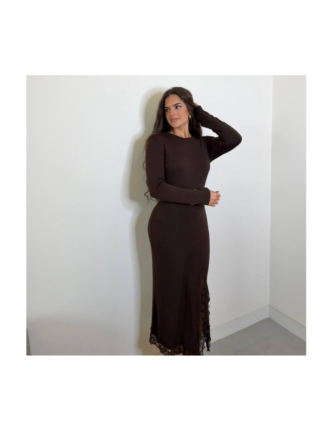 VESTIDO PUNTO CON ENCAJE CHOCO