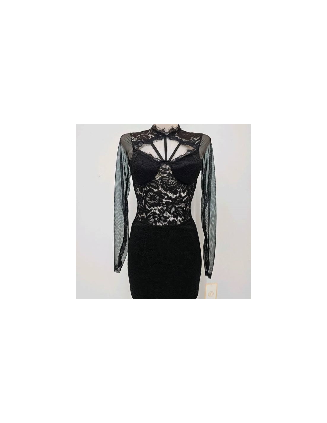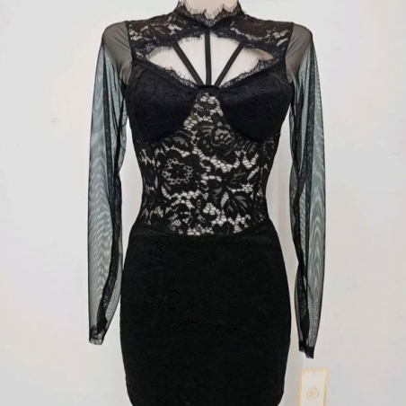 VESTIDO ENCAJE TRANSPARENCIAS NEGRO