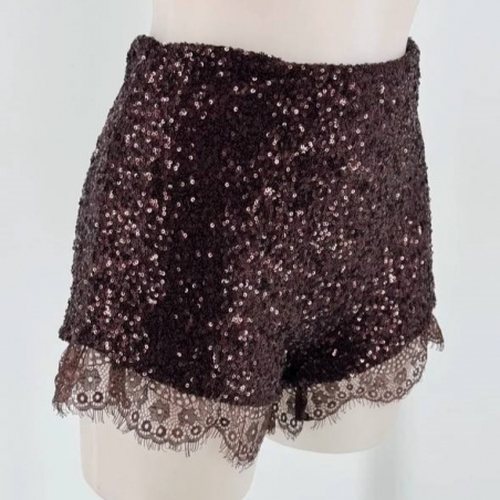 SHORT LENTEJUELAS CHOCO + ENCAJE