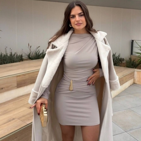 Vestido lágrima dorada. Fruncido delantero. De manga larga. Talla única.