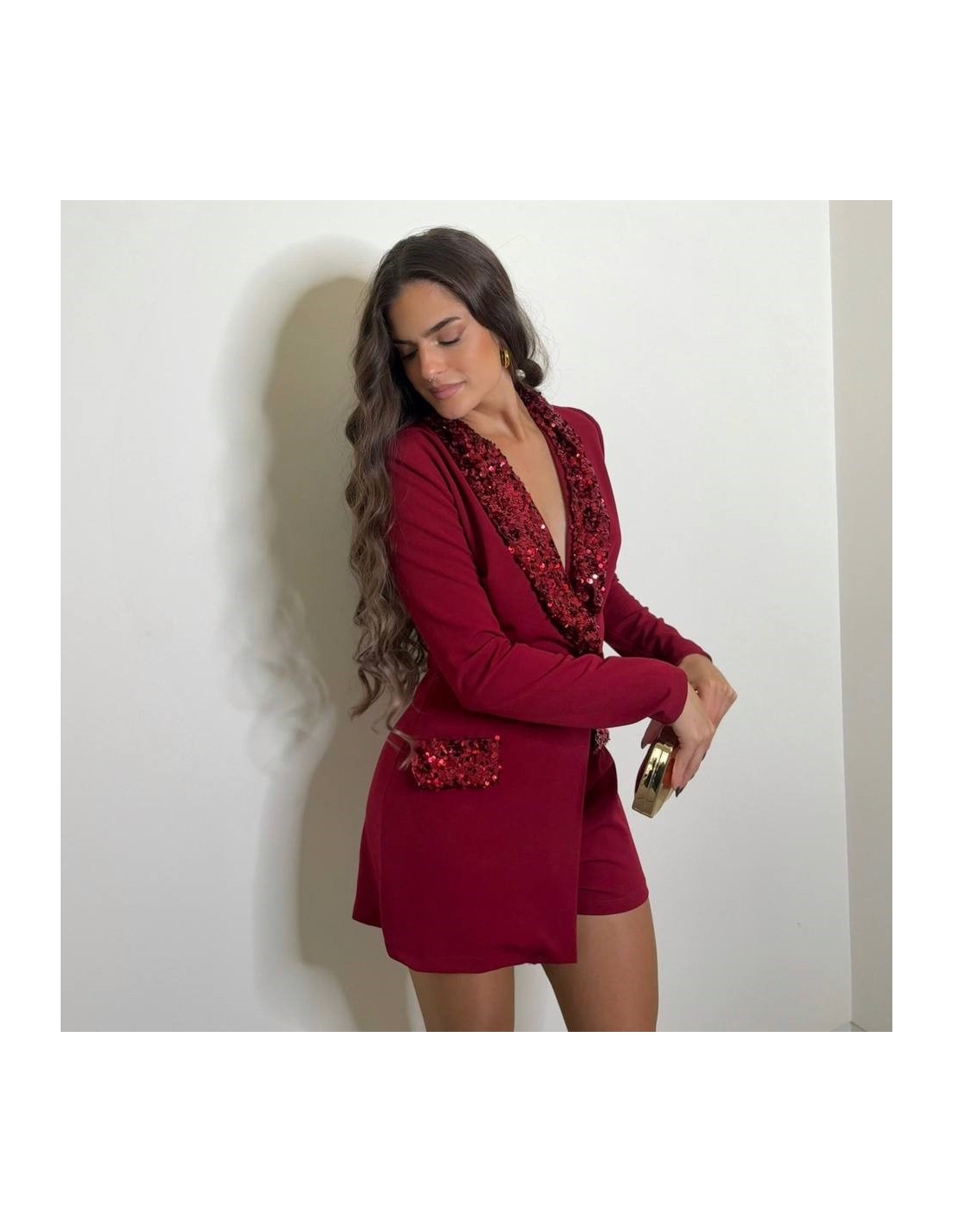 Mono corto blazer con solapa de lentejuelas a tono. Talla única.
