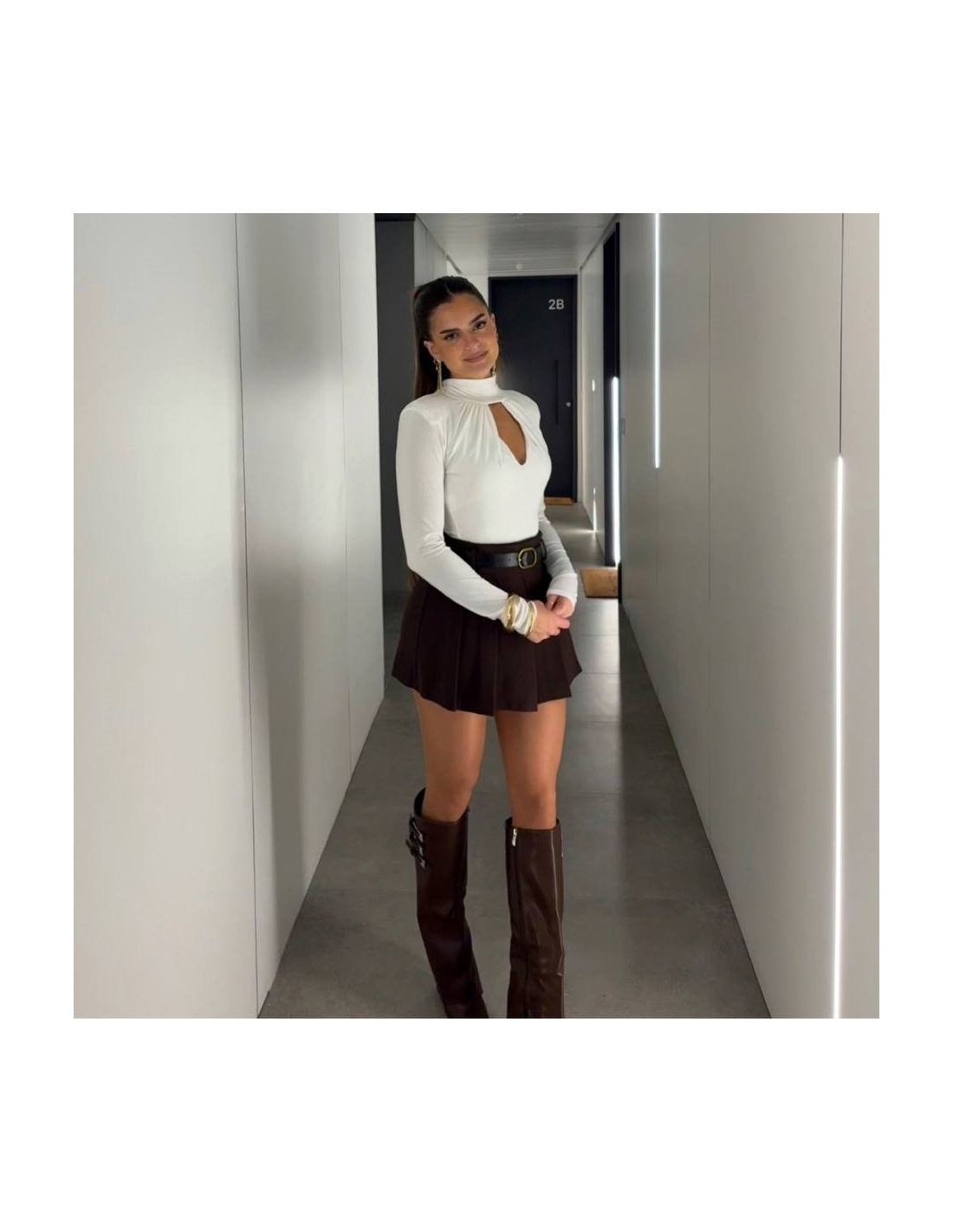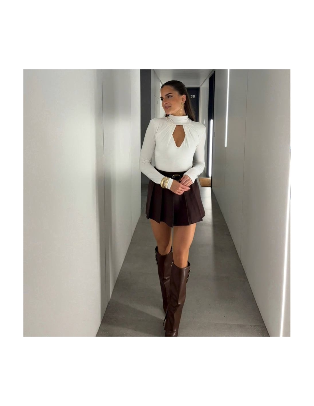 Body abertura blanco de manga larga. Regulable con lazada al cuello. Cierre en bajo. Talla única