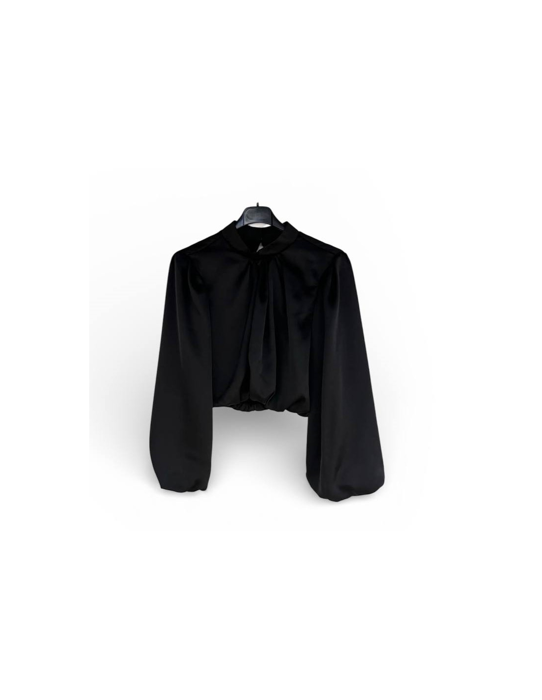 Blusa corta bombay satinada en tono negro. De manga larga. Con forro interior a tono. Talla única