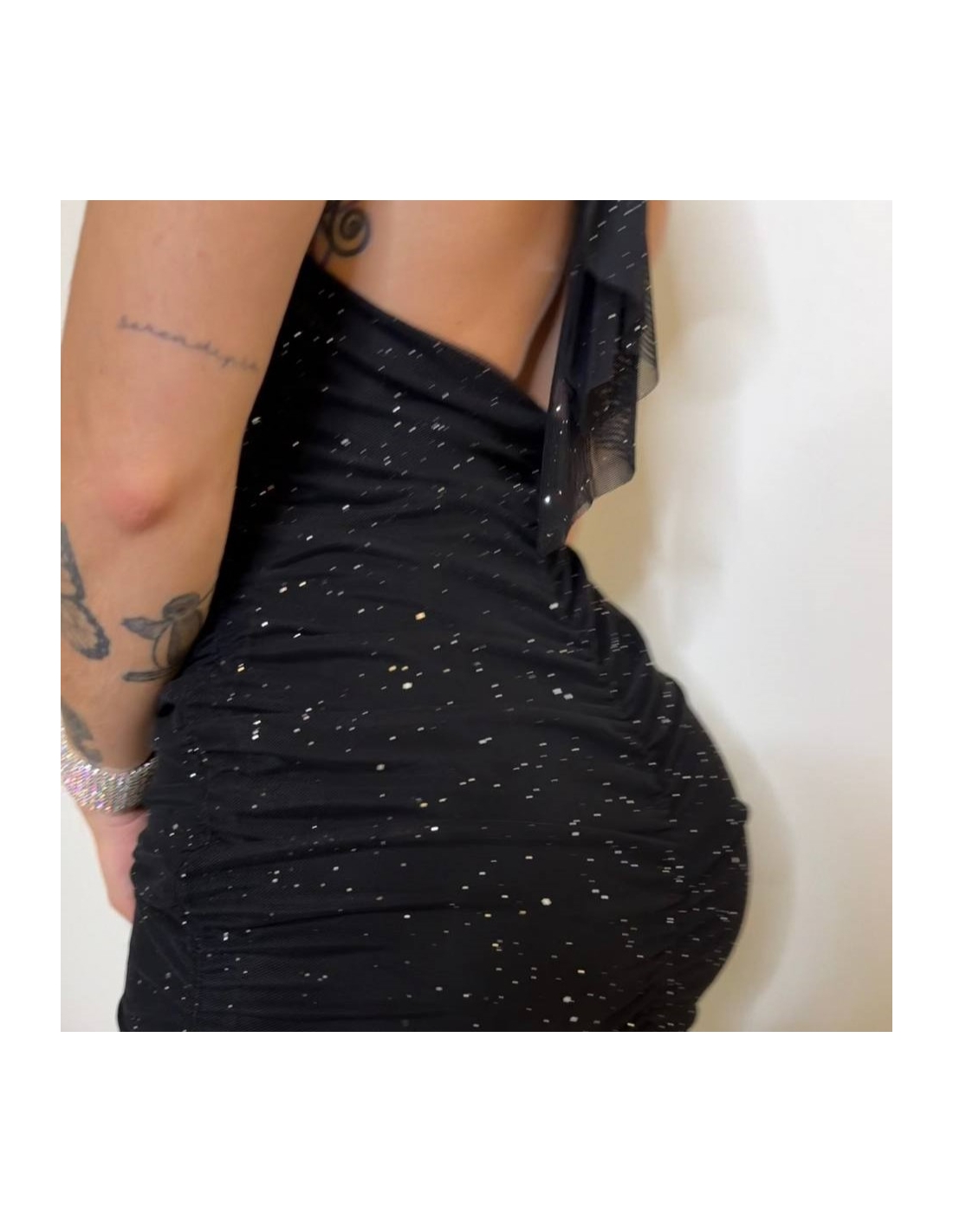Vestido Aura de tul con brillito. Forro interior. Fruncido. Talla única.