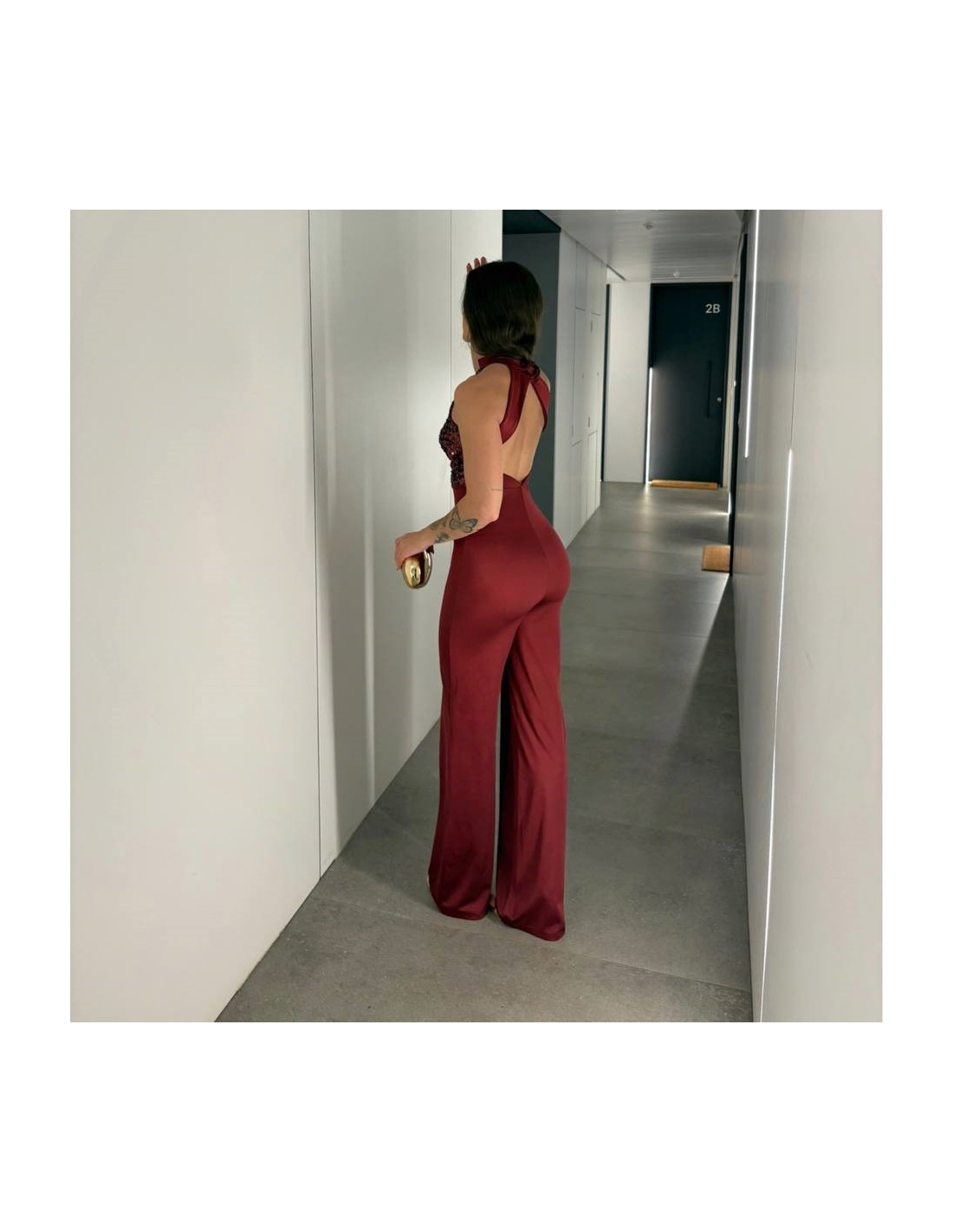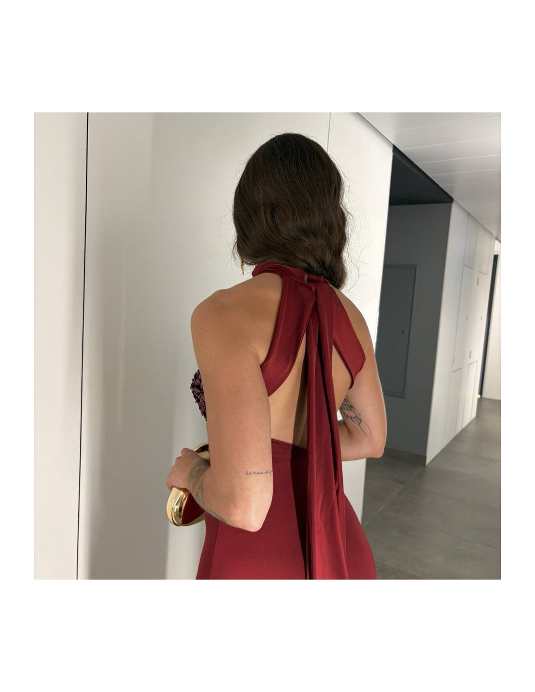 Mono halter de campana con escote en espalda. Posibilidad de lazada trasera. Elástico. Talla única