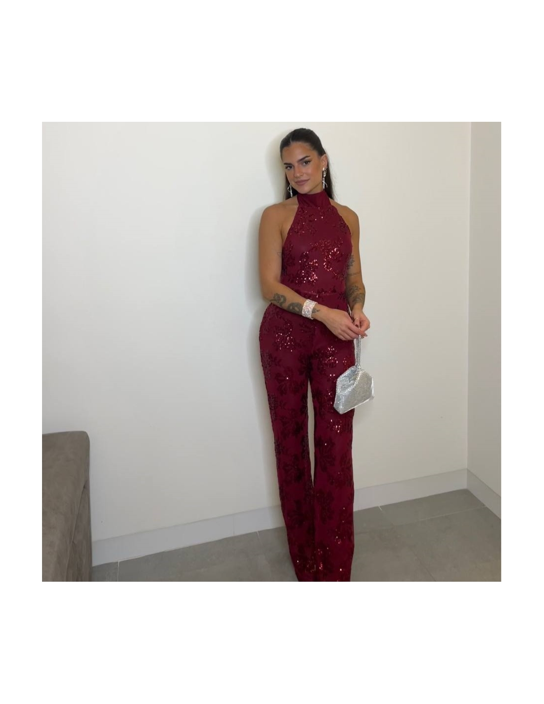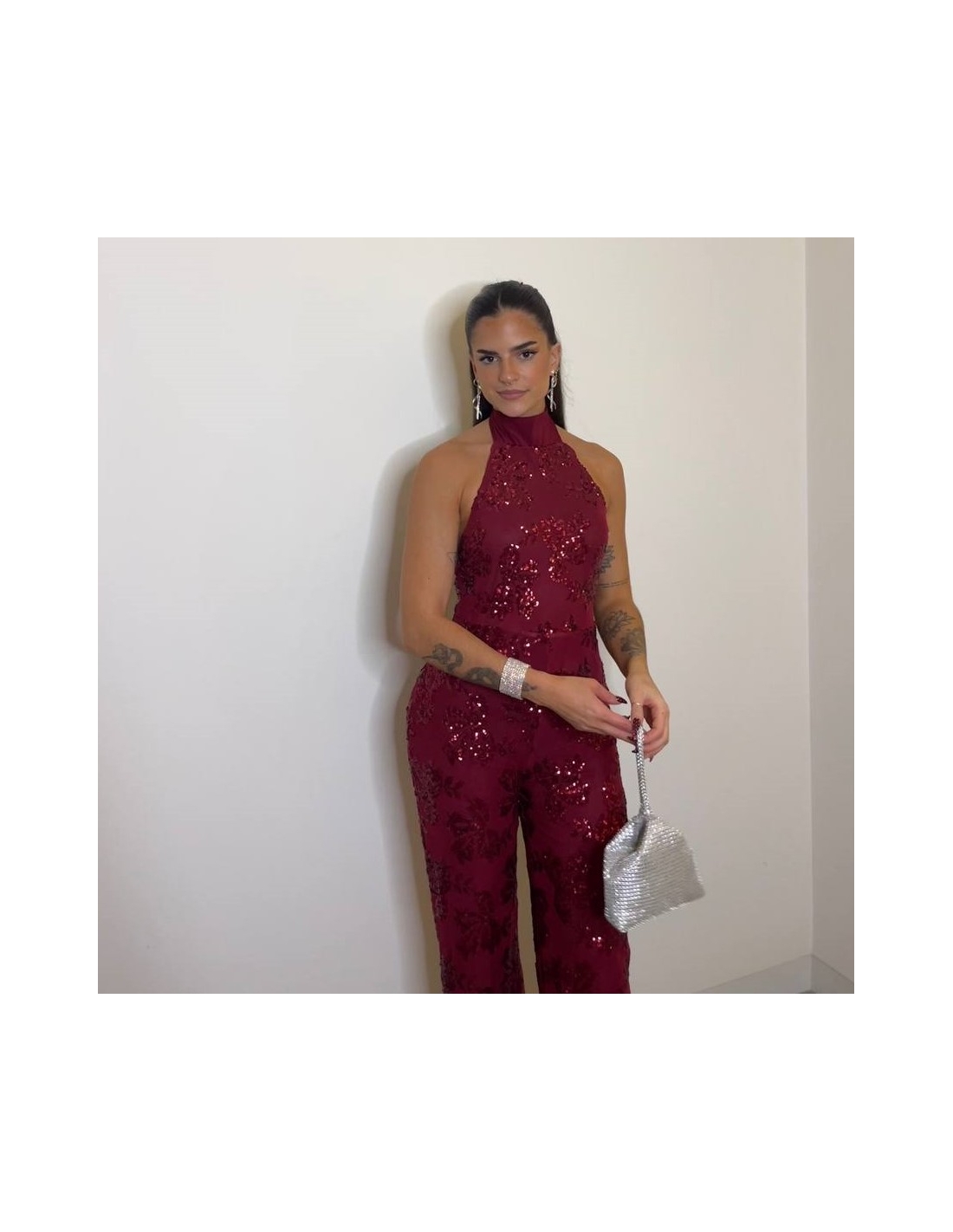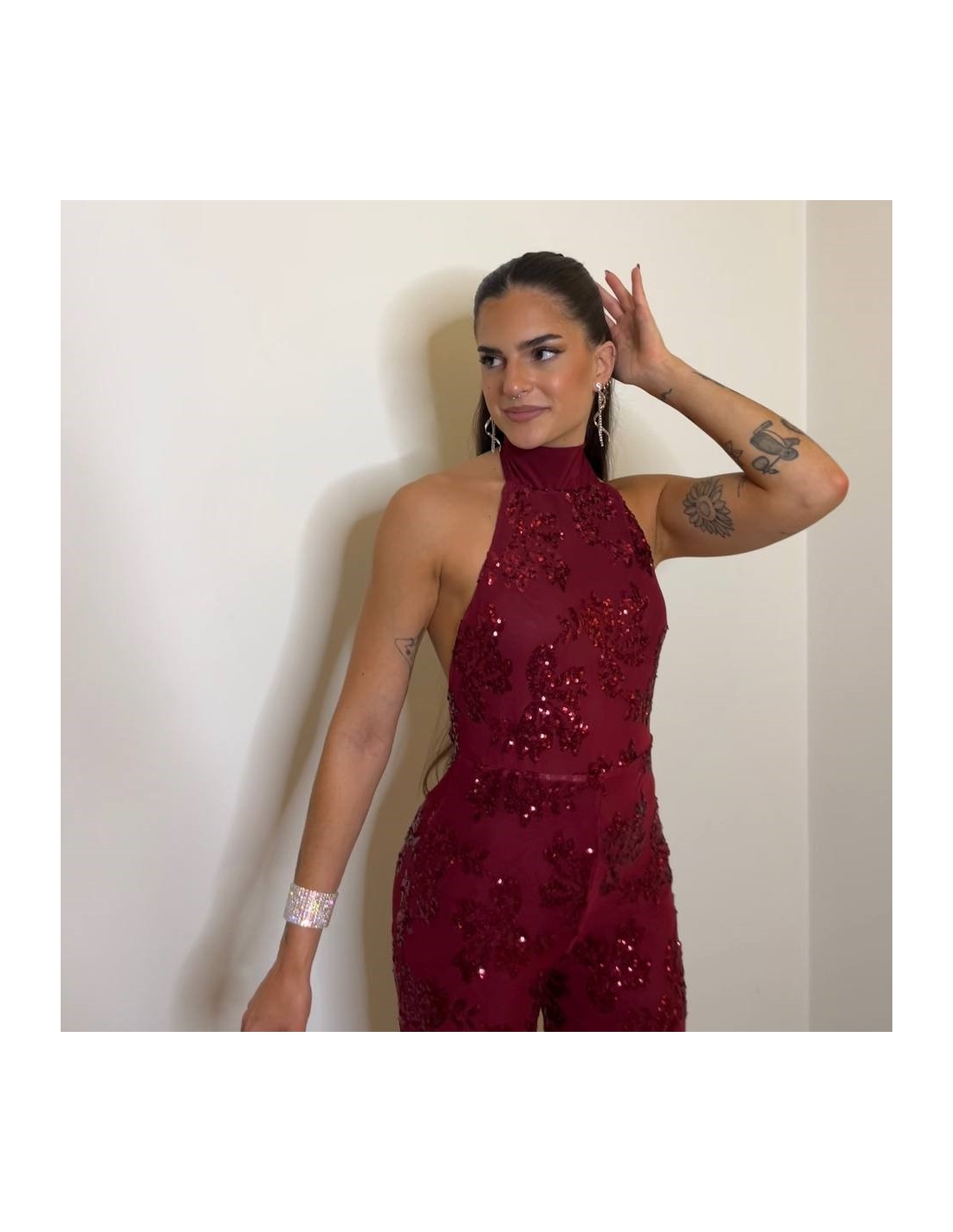 MONO HALTER LENTEJUELAS VINO