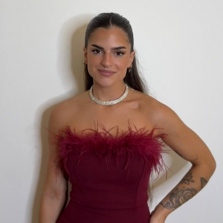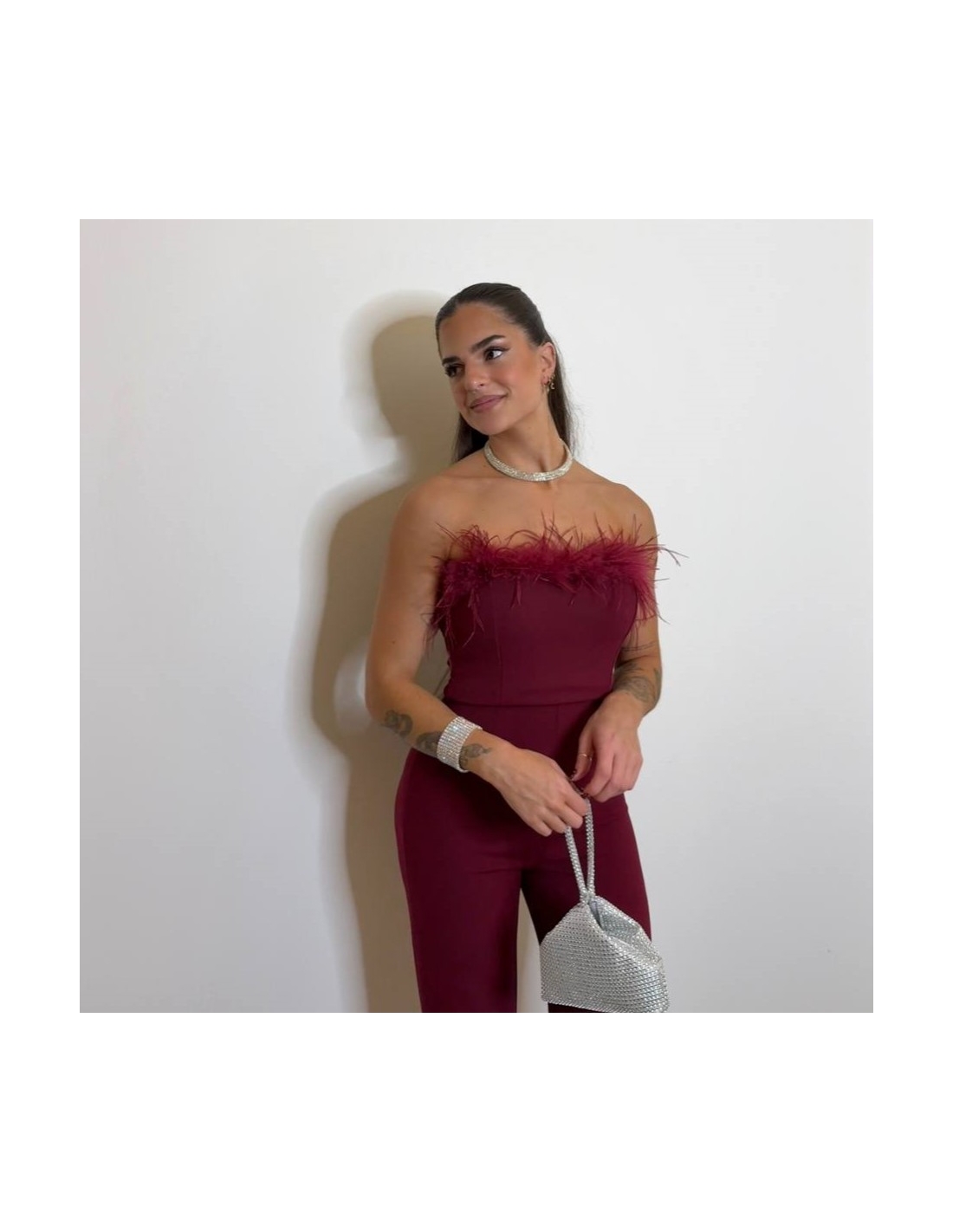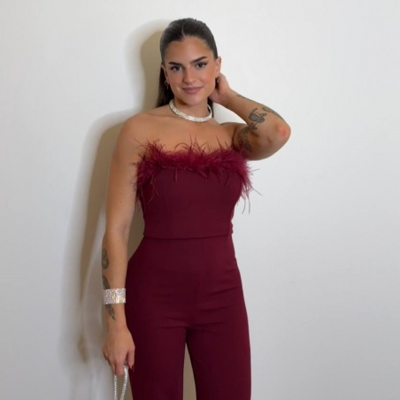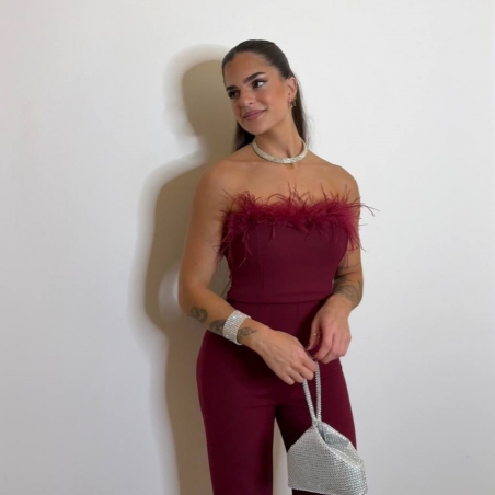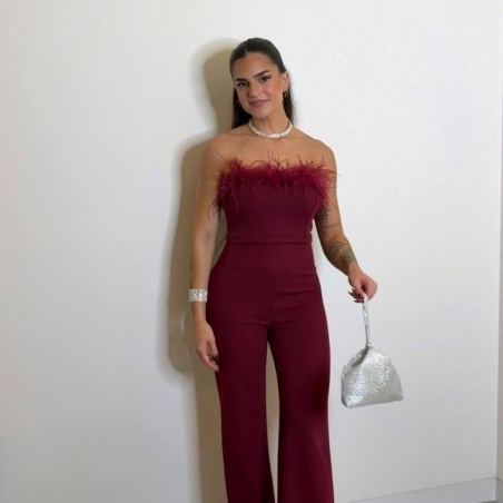Mono de campana largo en tono vino. Cierre trasero con cremallera oculta. Posibilidad de usar con tirantas finas regulables a tono. Talla única