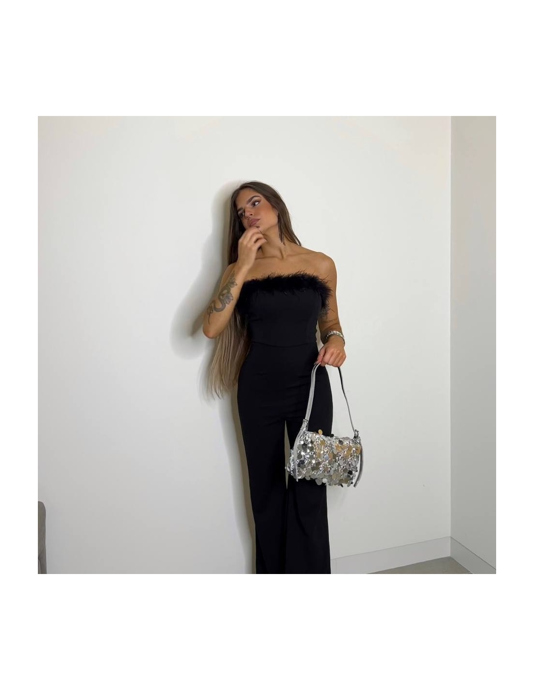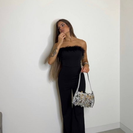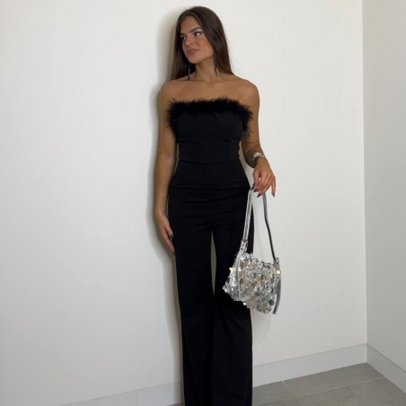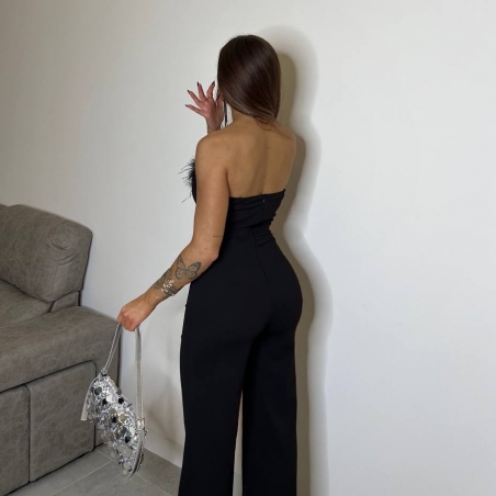Mono de campana largo en tono negro. Cierre trasero con cremallera oculta. Posibilidad de usar con tirantas finas regulables a tono. Talla única