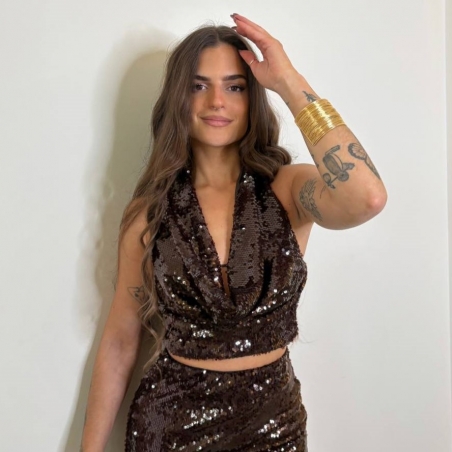 Nuevo Últimas unidades en stock Todos los productos VESTIDO LENTEJUELAS ESCOTE FLUIDO CHOCO 42,90 € Vestido largo de lentejuelas en tono choco. Escote fluido. Con forro interior a tono. Talla única Añadir al carrito