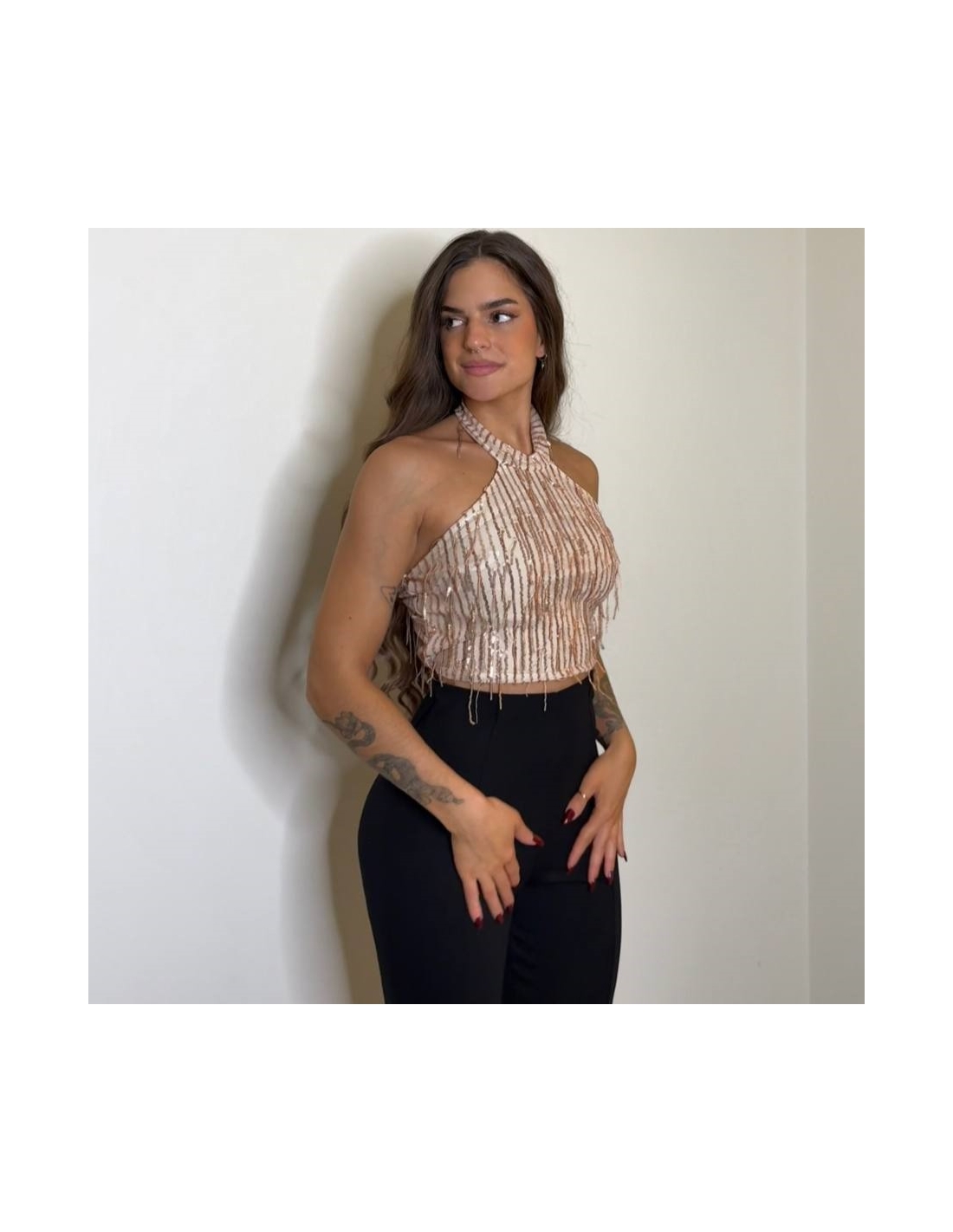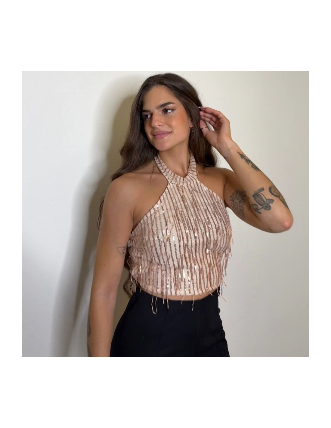 Top halter lentejuelas flecos. Con forro interior. Talla única.