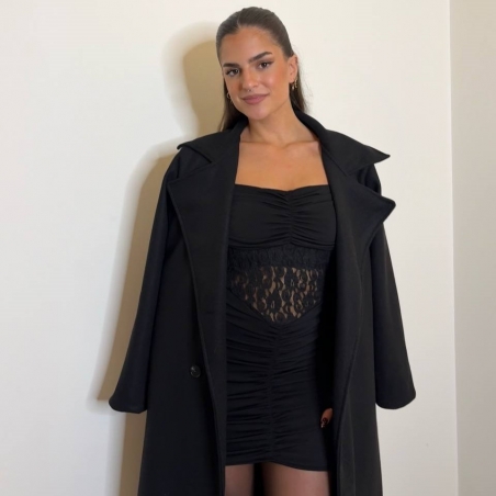 Vestido corto con bajo fruncido. Escote barco. Encaje. Talla única.