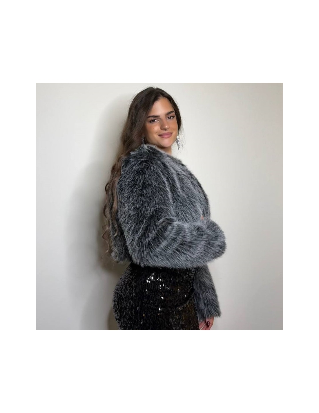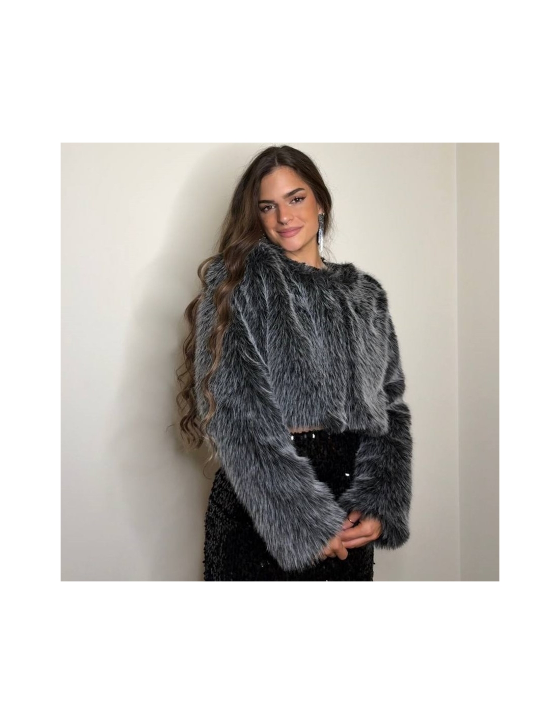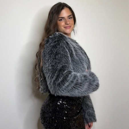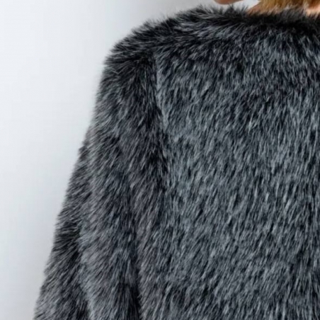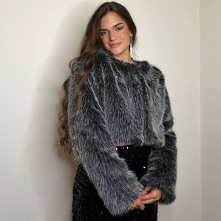 Abrigo pelito corto en tono gris. Con forro interior a tono. Cuello redondo. Talla única