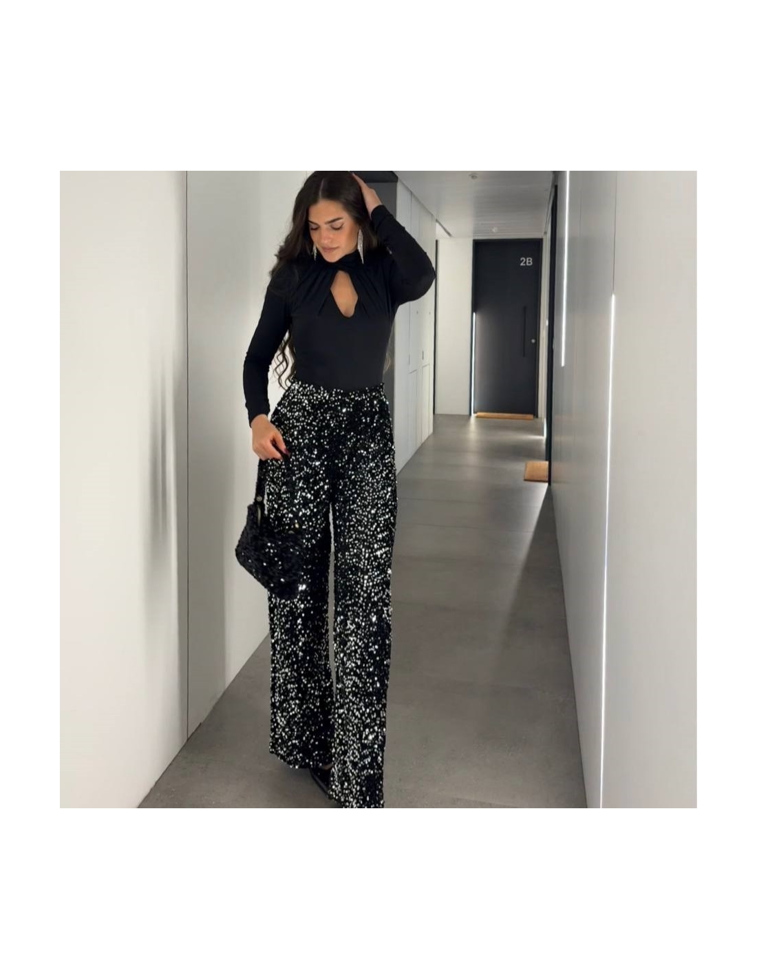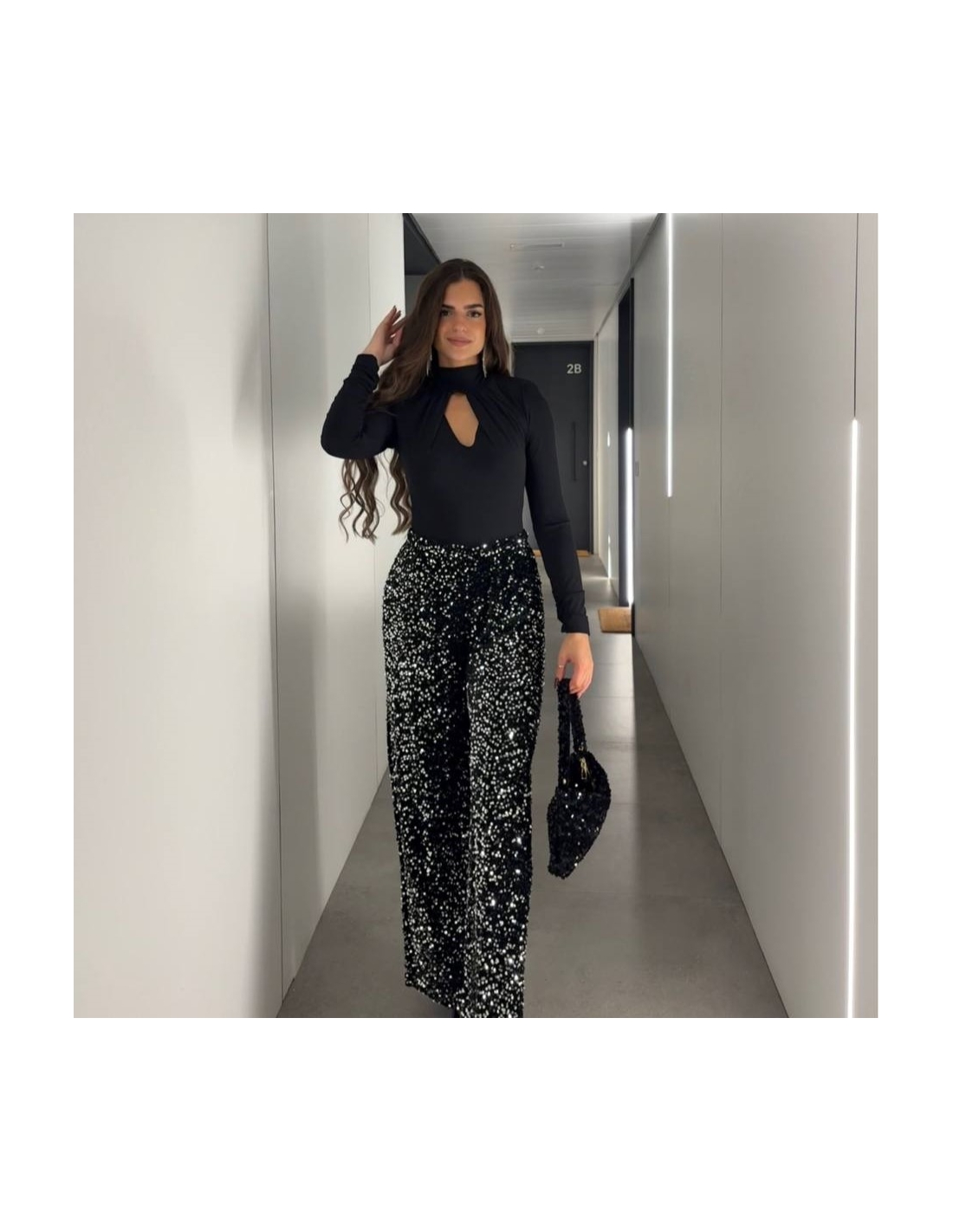 Body abertura negro de manga larga. Regulable con lazada al cuello. Cierre en bajo. Talla única