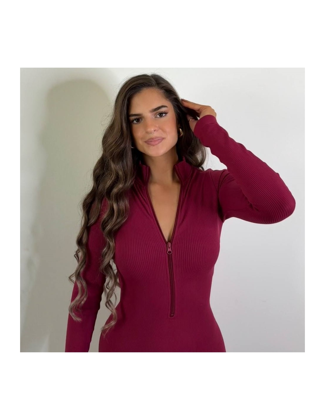 Mono reductor en tono vino. De manga larga. Cierre delantero con cremallera. Talla única