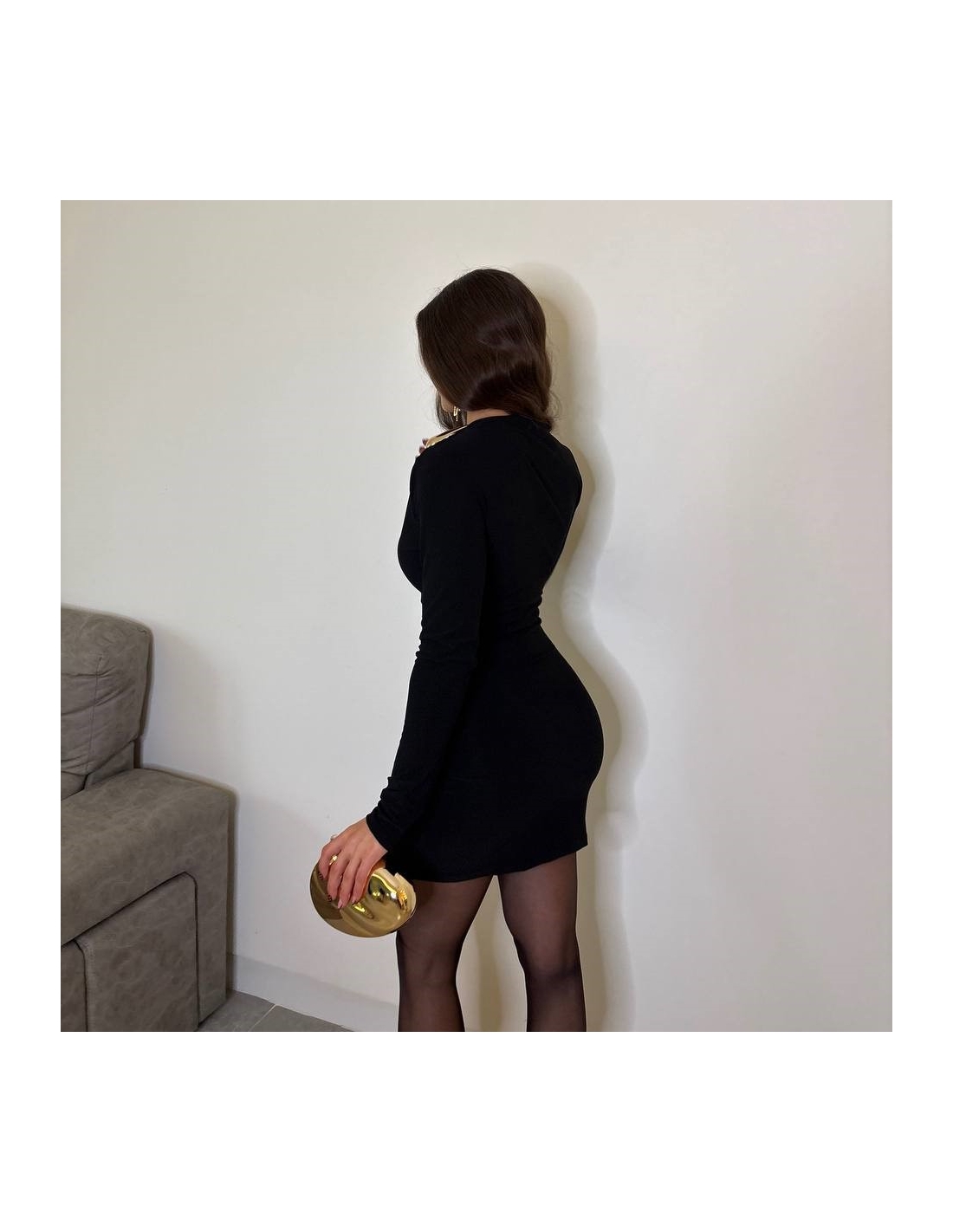 Vestido lágrima dorada. Fruncido delantero. De manga larga. Talla única.