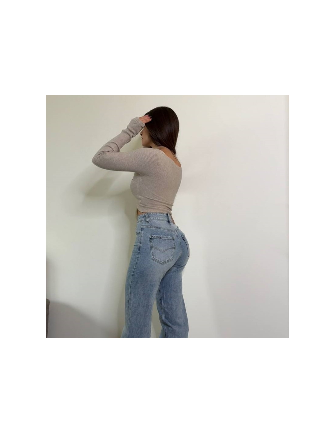 Jeans de tiro alto. fluido. Cierre delantero con cremallera y botón. Con bolsillos. Elástico.
