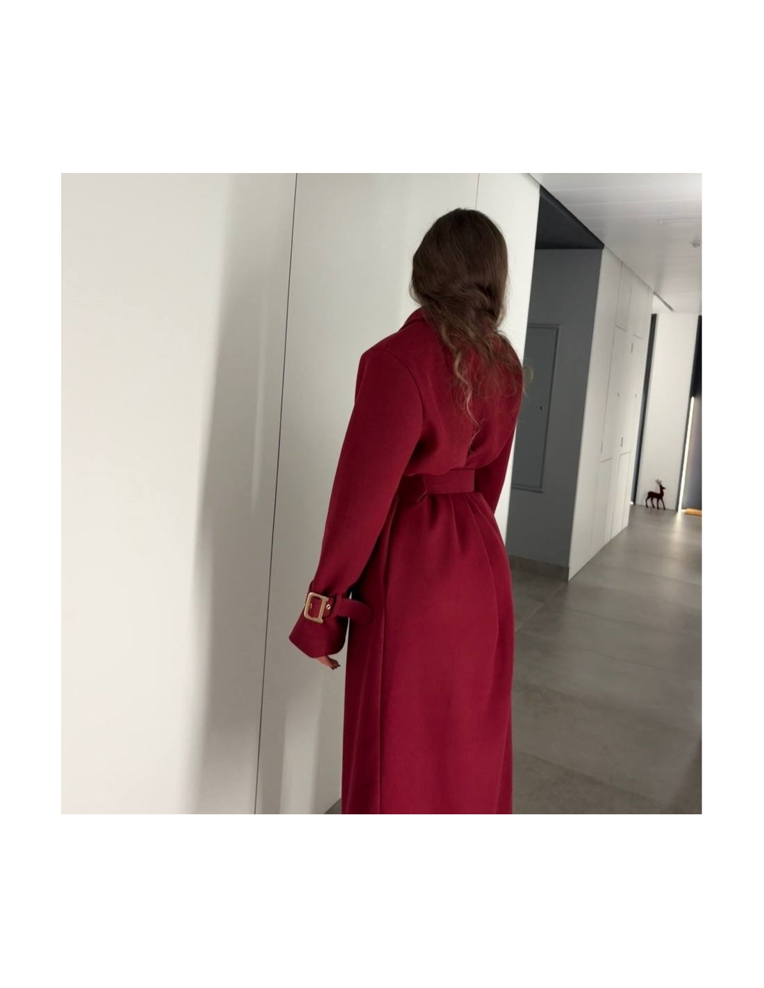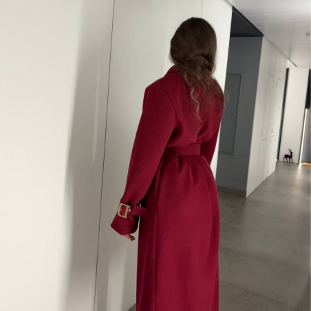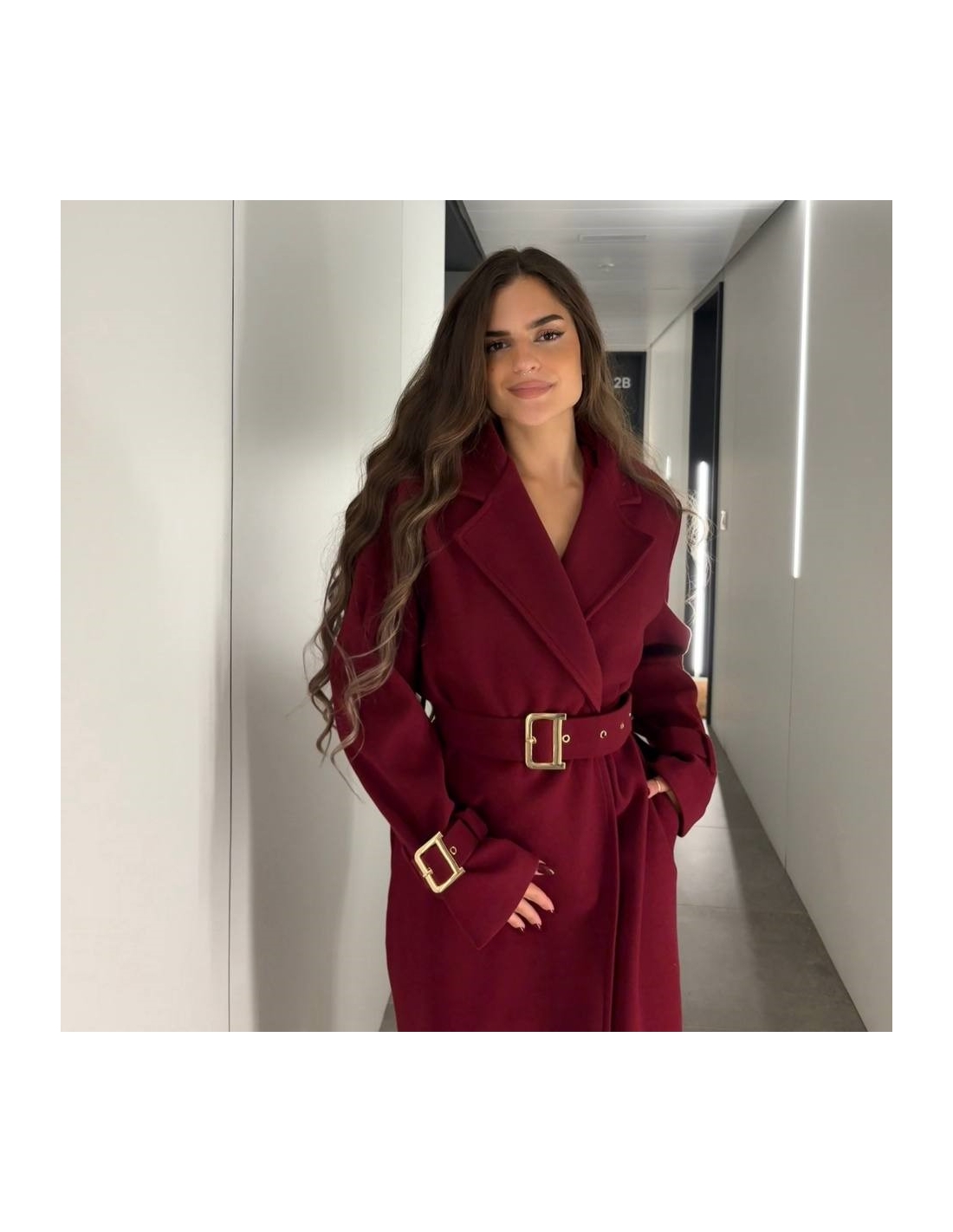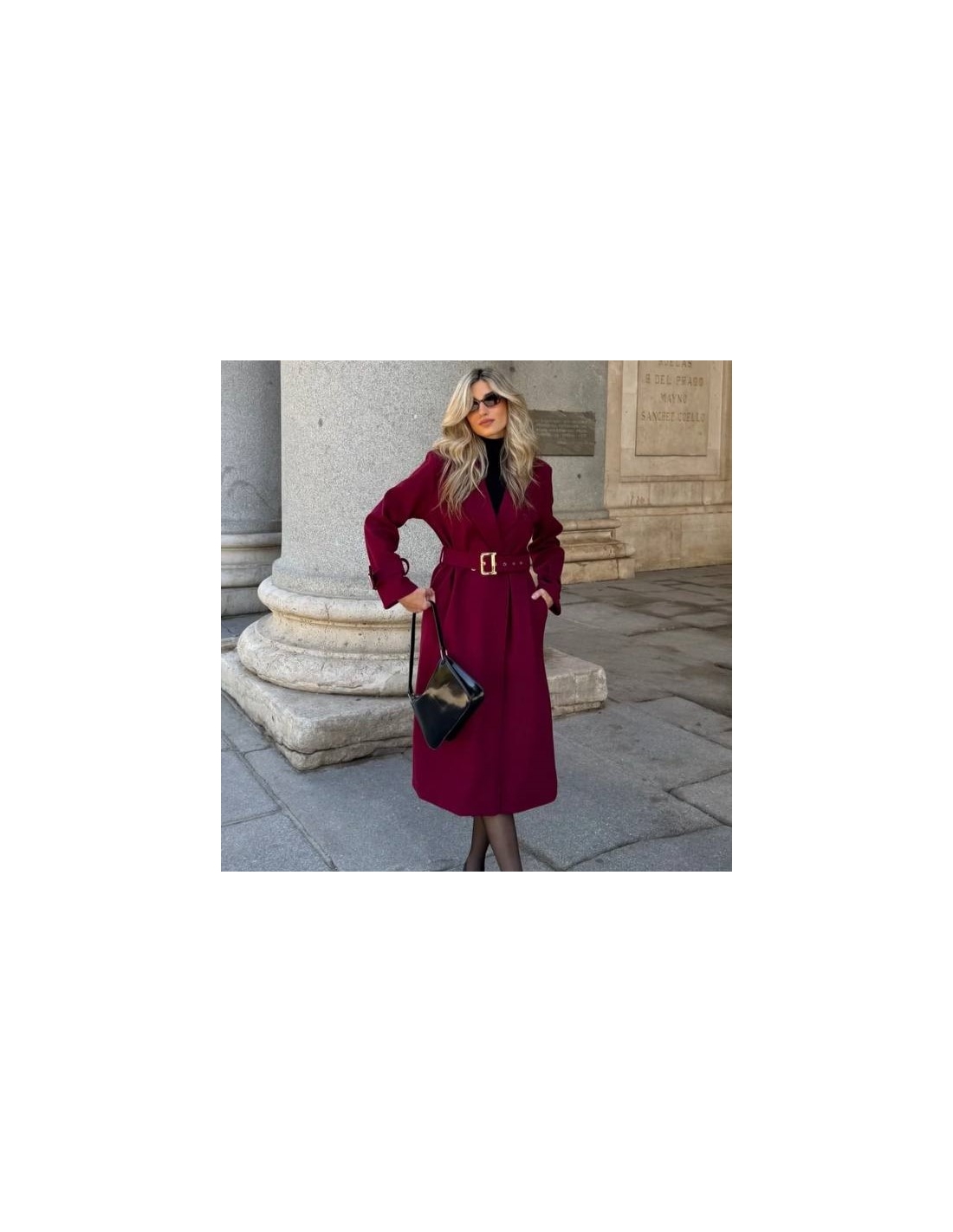 Abrigo de paño largo con cinturón a tono y detalles dorados. Talla única.