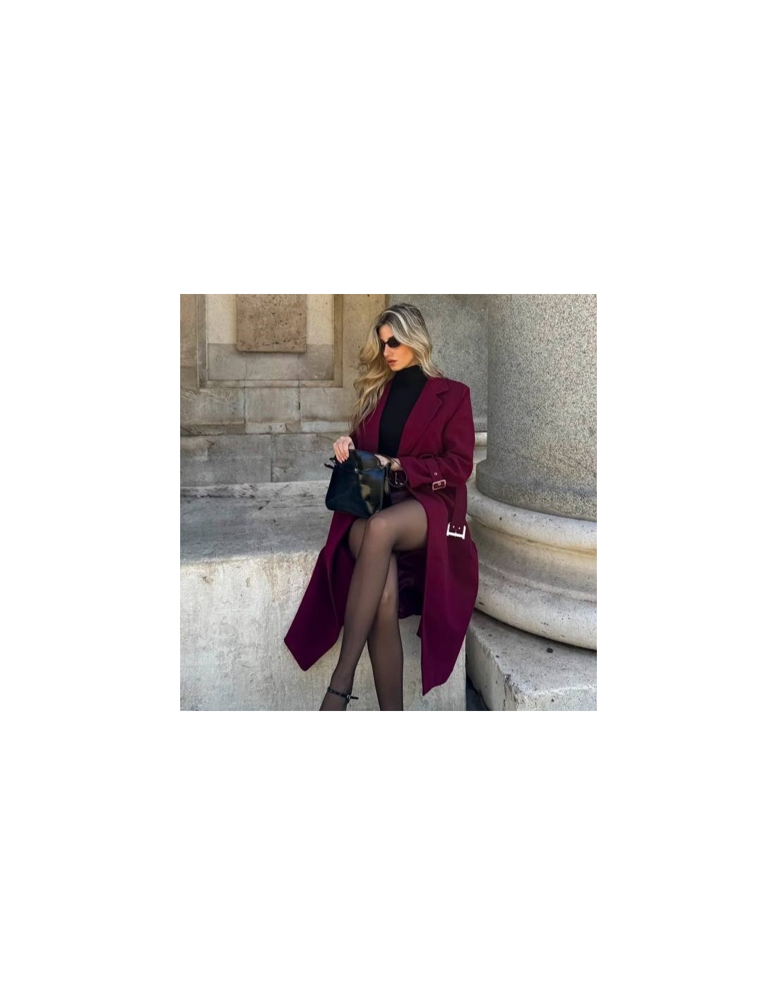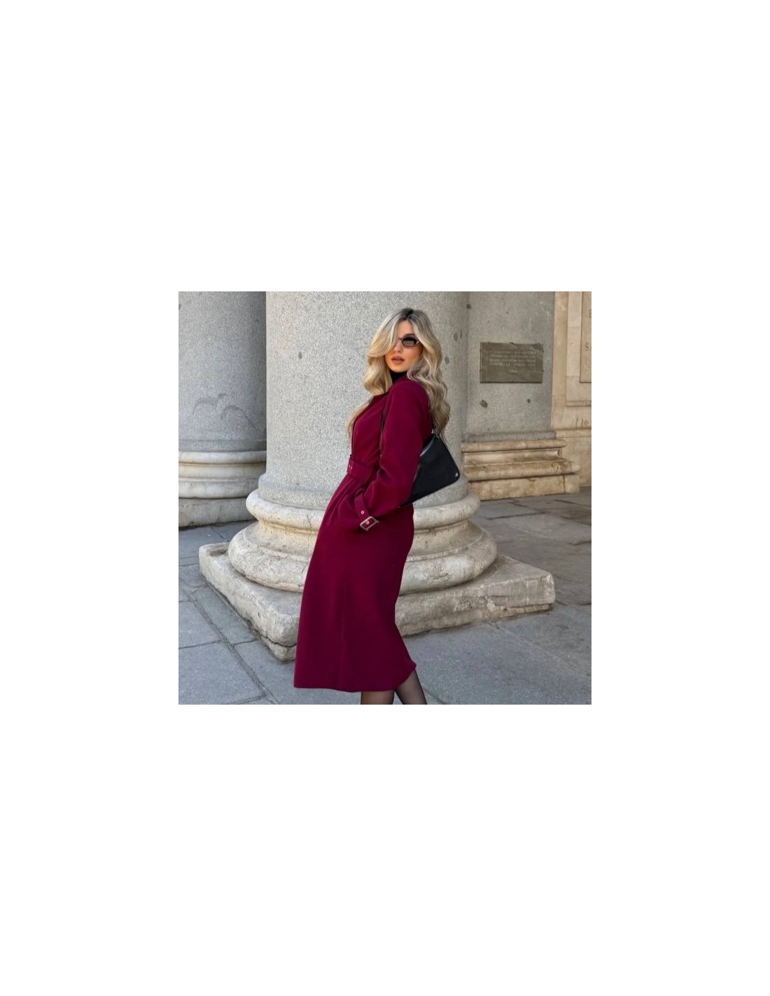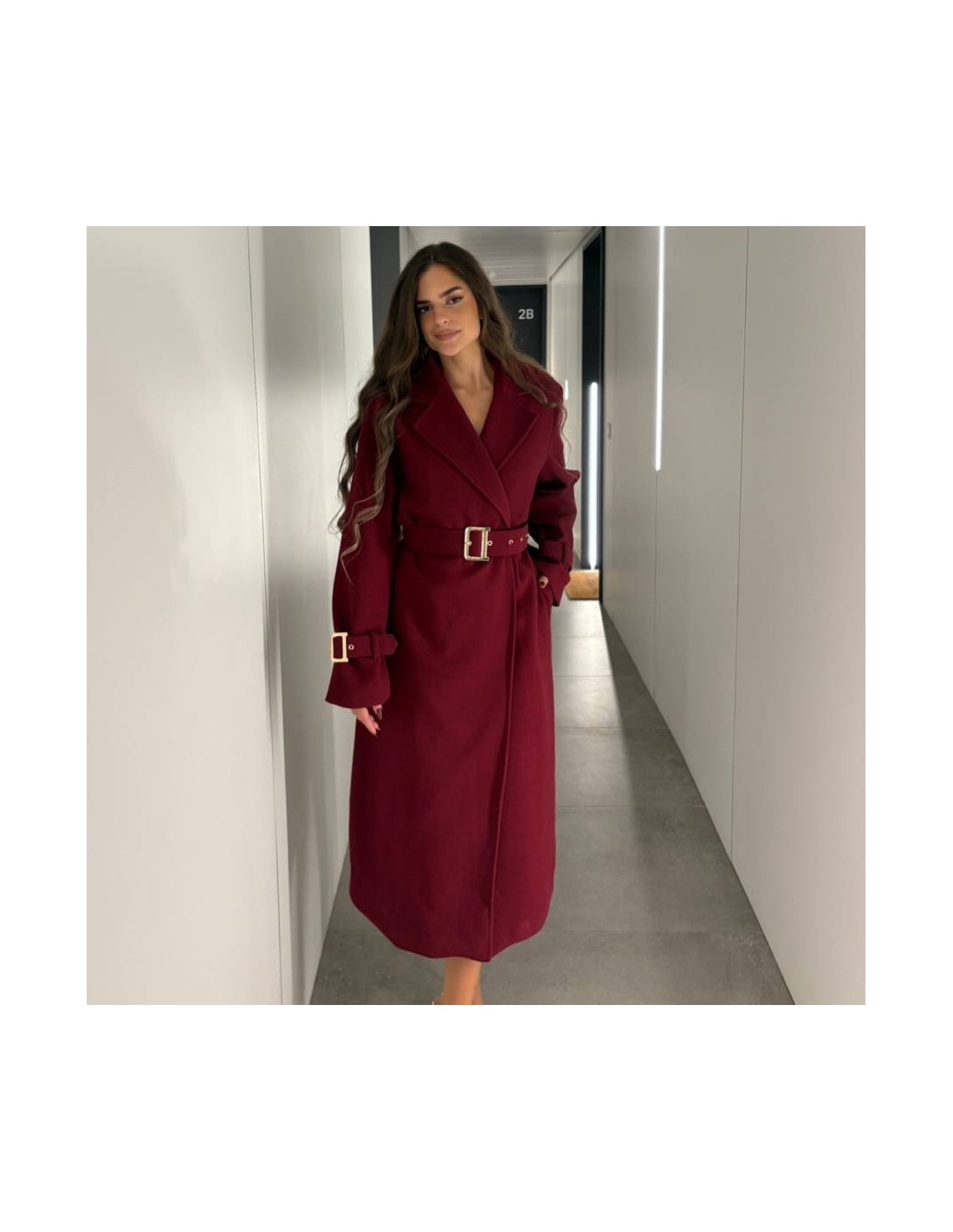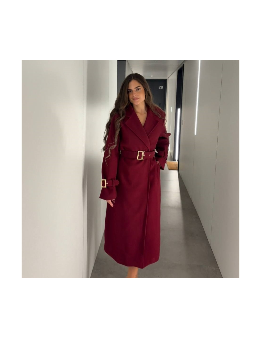 Abrigo de paño largo con cinturón a tono y detalles dorados. Talla única.