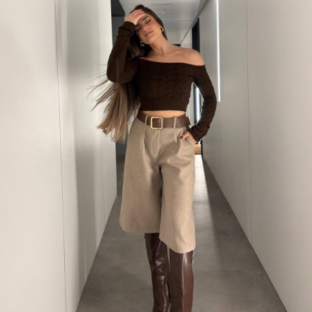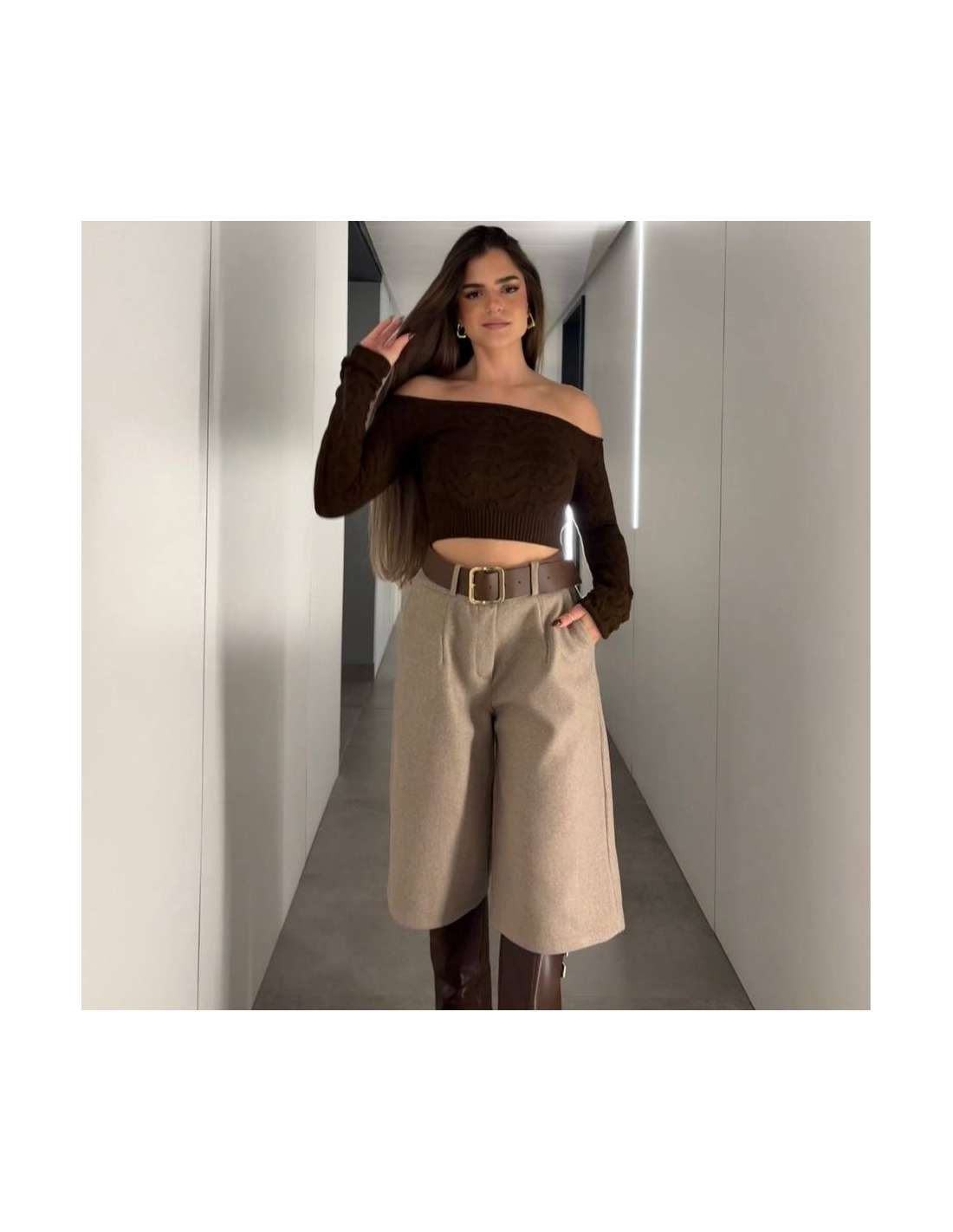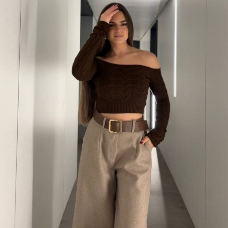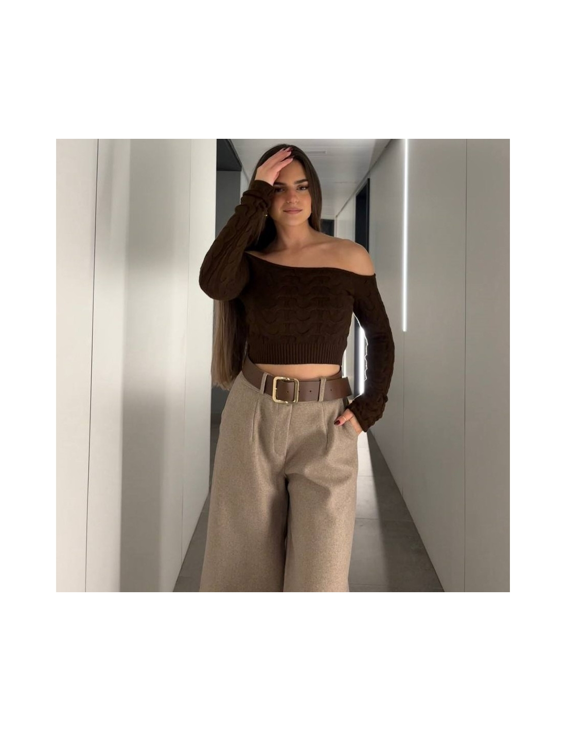 Jersey trenzado. De manga larga. Escote recto. Talla única