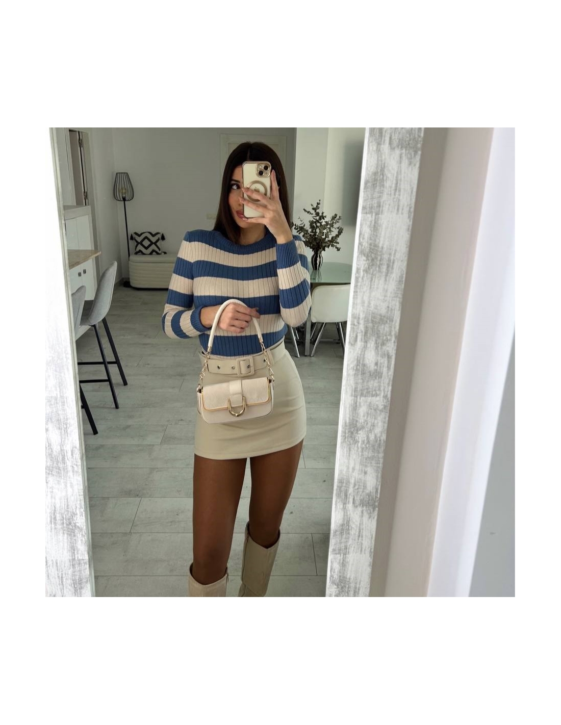 Falda pantalón de tiro alto con cinturón a tono. Elástica. Talla única
