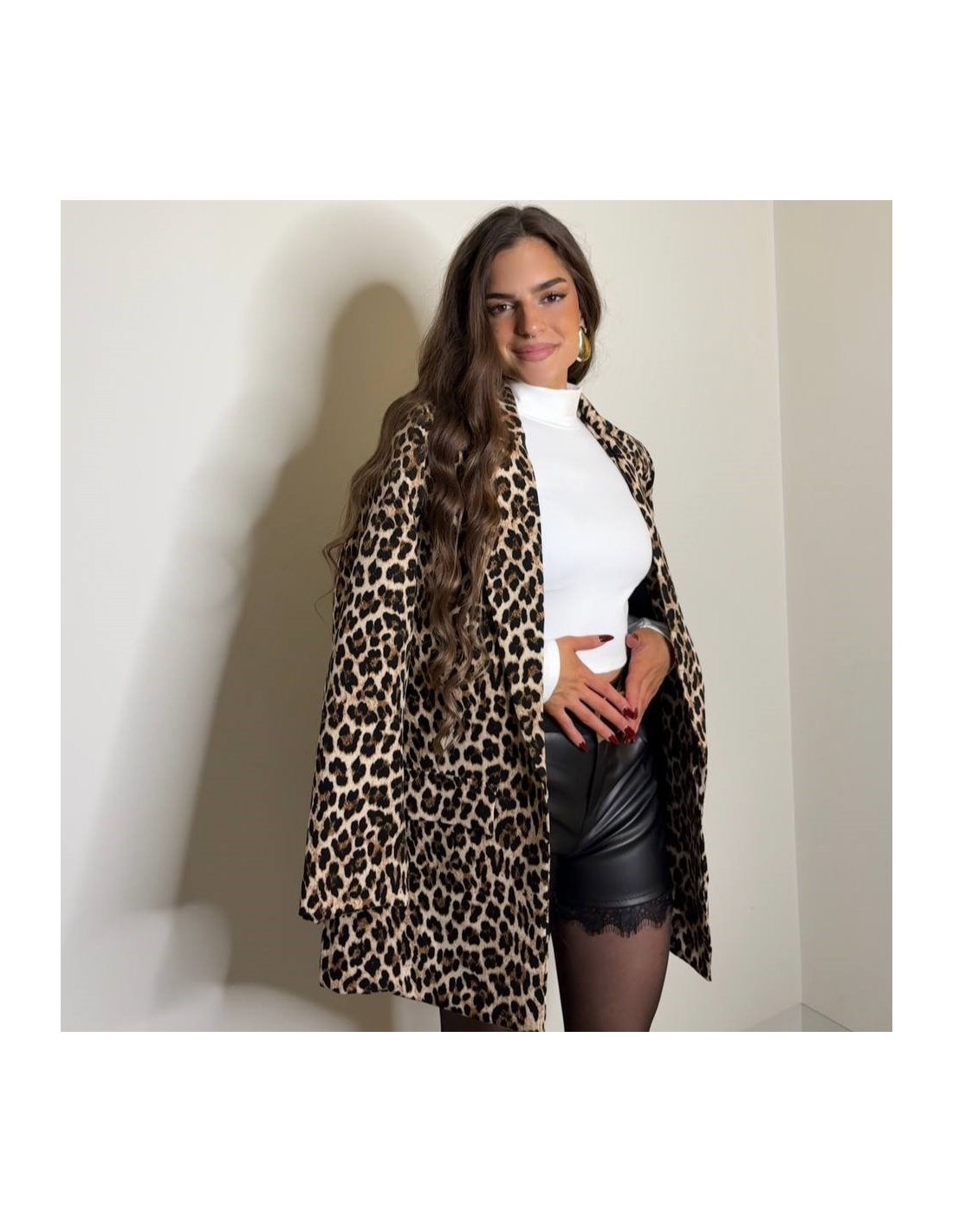Pantalón de tiro alto en tono negro. Efecto piel. Encaje en bajo. cierre delantero con botón y cremallera. Talla única