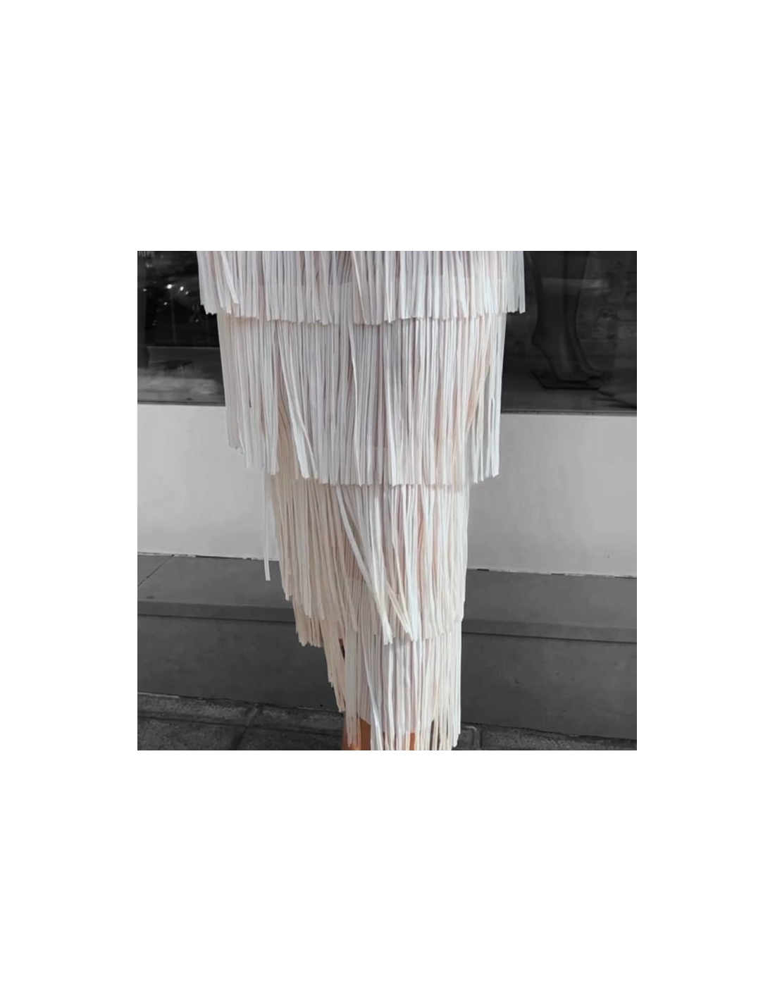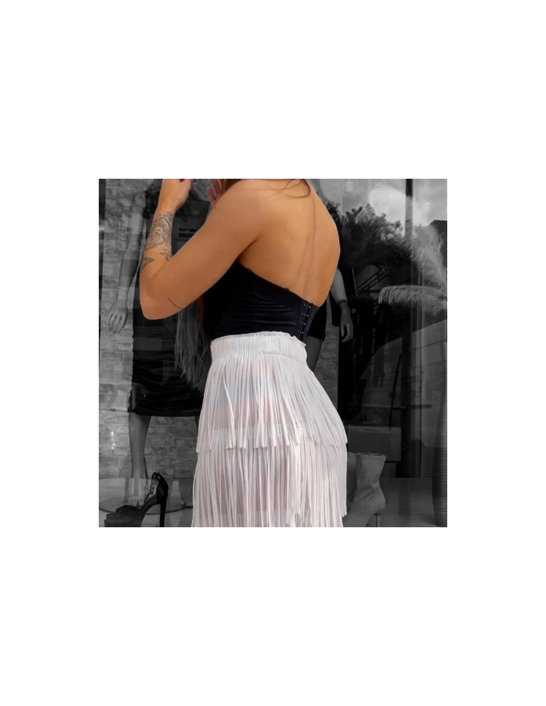 Falda flecos midi en tono crema. Cintura elástica. De tiro alto. Talla única