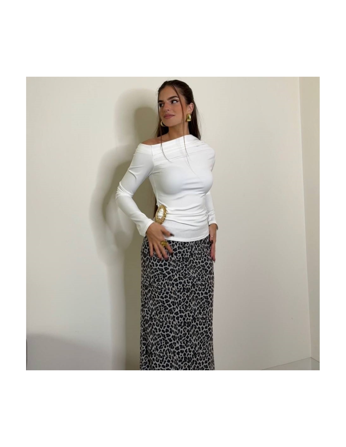 Falda midi tul con estampado animal print. Con forro interior a tono. De tiro alto. Cintura elástica. Talla única
