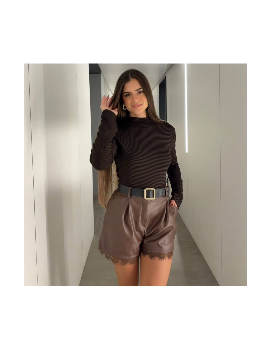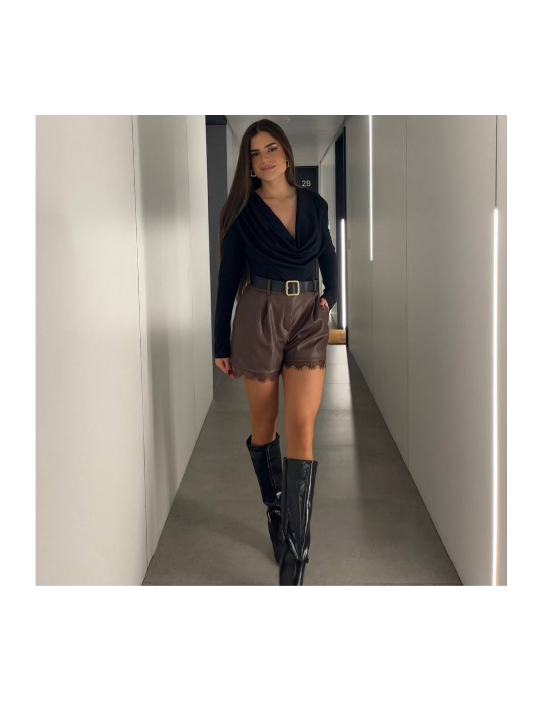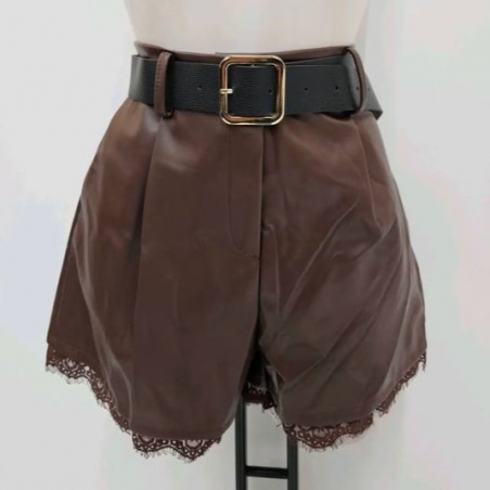 Pantalón de tiro alto. Efecto piel. Encaje en bajo. cierre delantero con botón y cremallera. Talla única