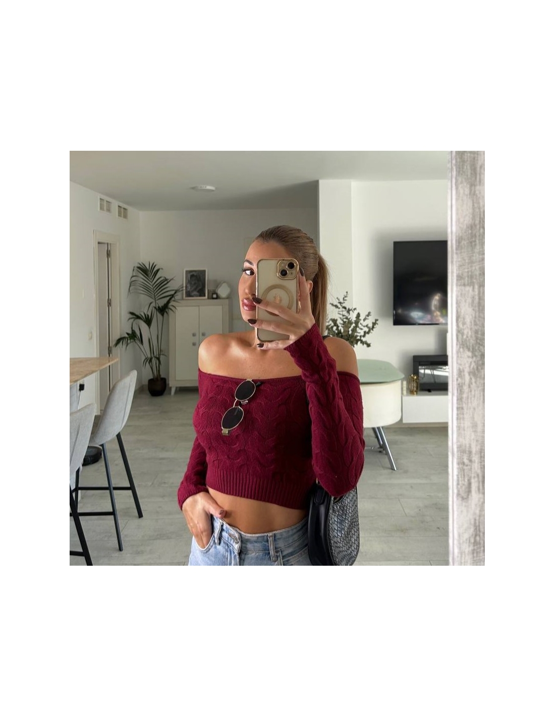 Jersey trenzado. De manga larga. Escote recto. Talla única