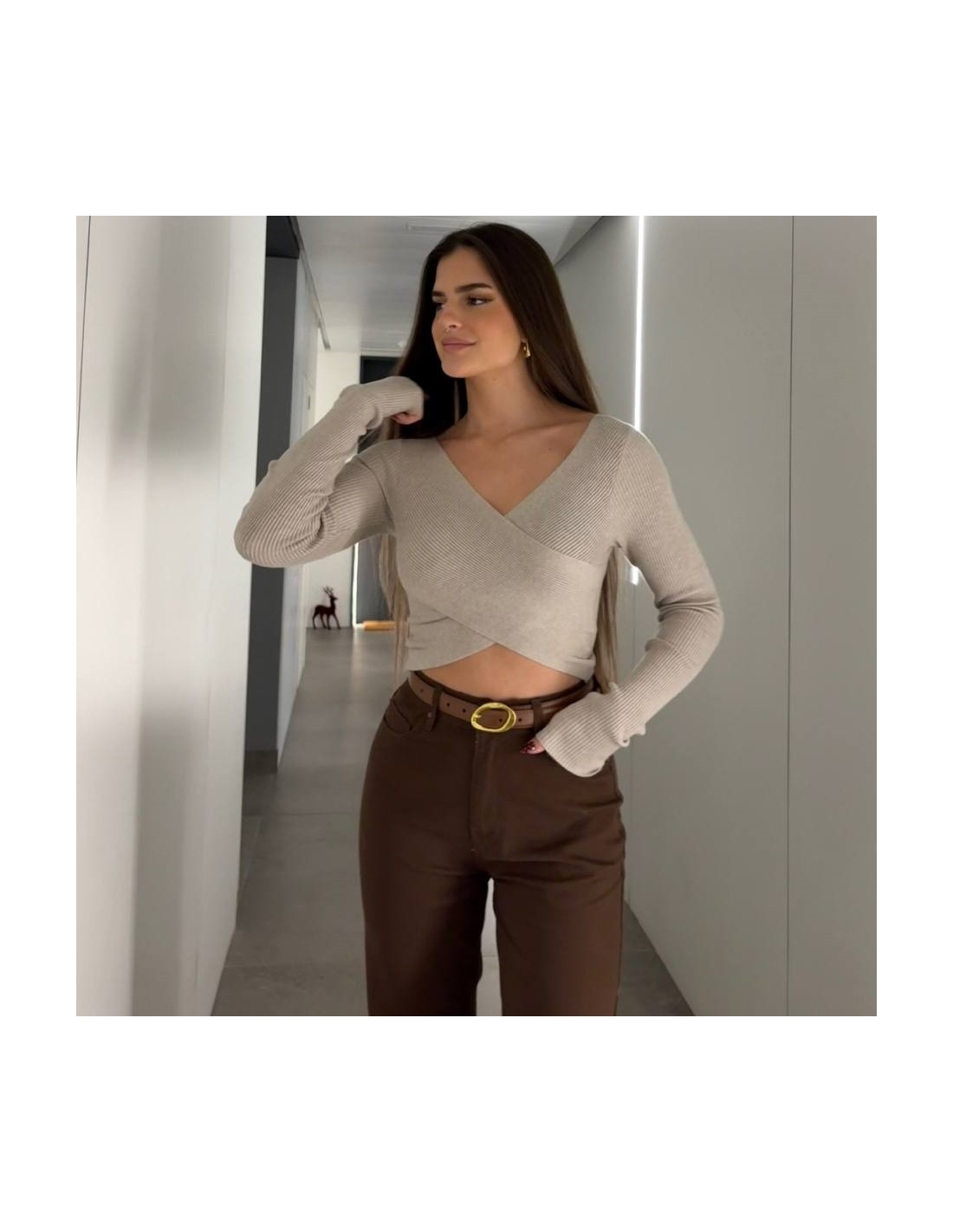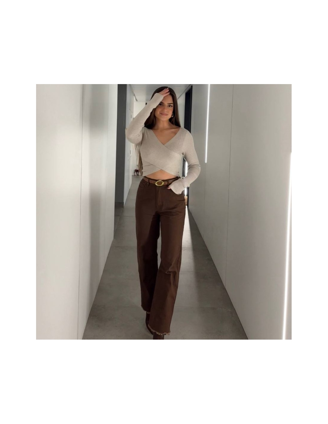 Pantalón campana de tiro alto. Elástico. Con bolsillos. Cierre delantero con cremallera y botón. Cinturón no incluído.