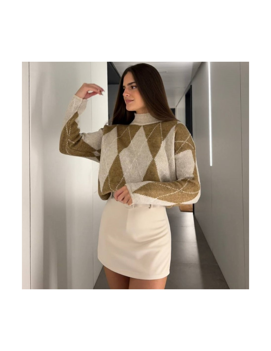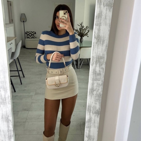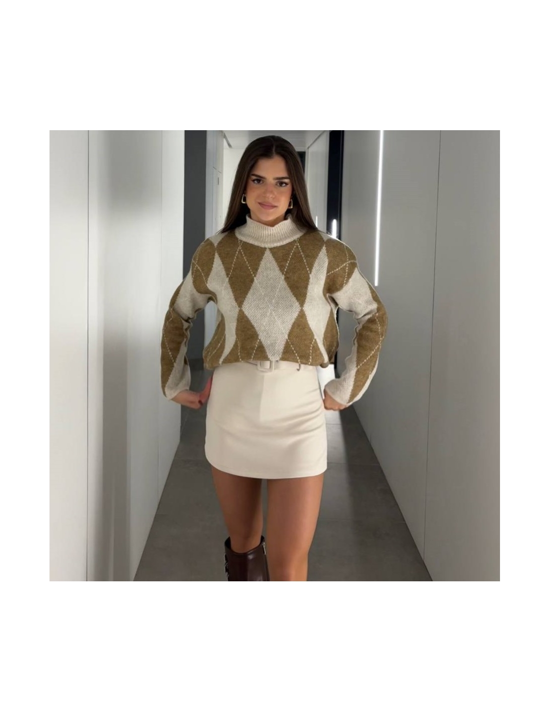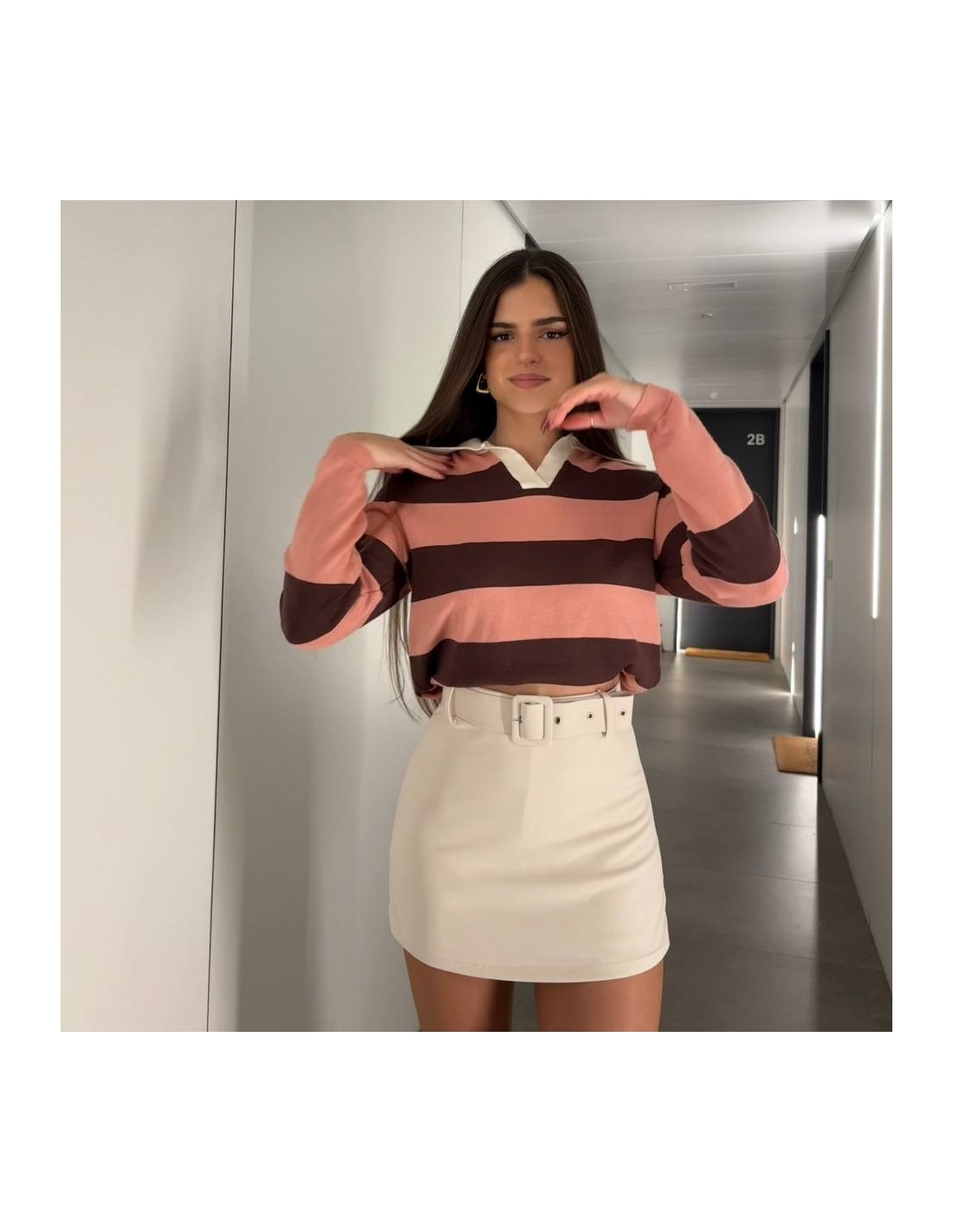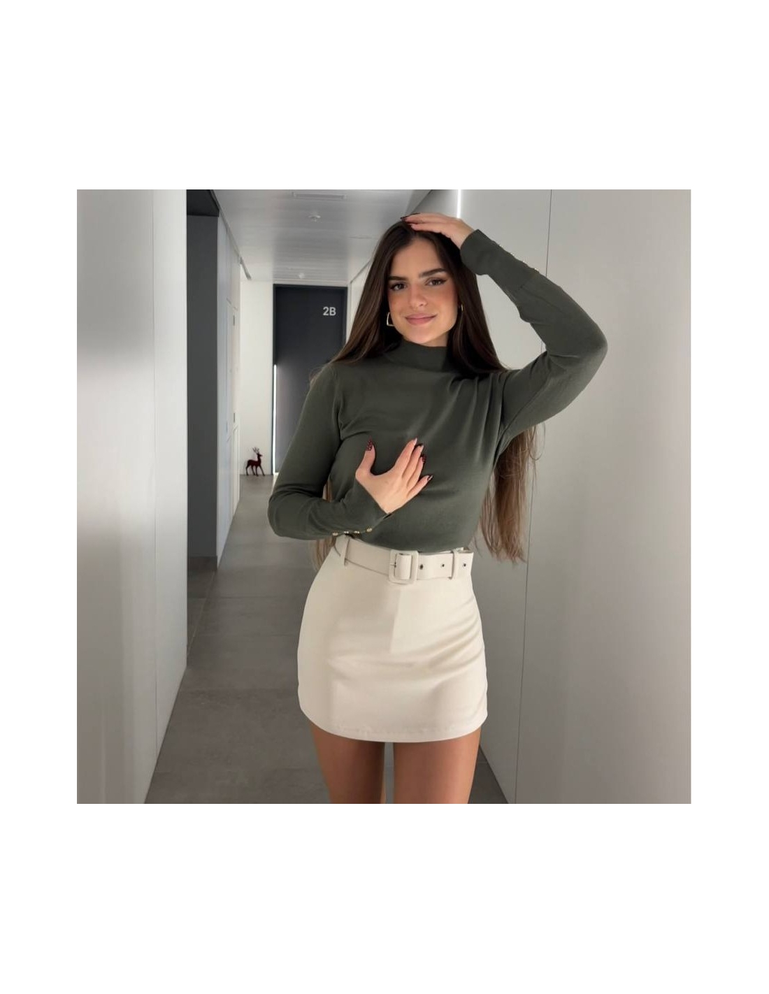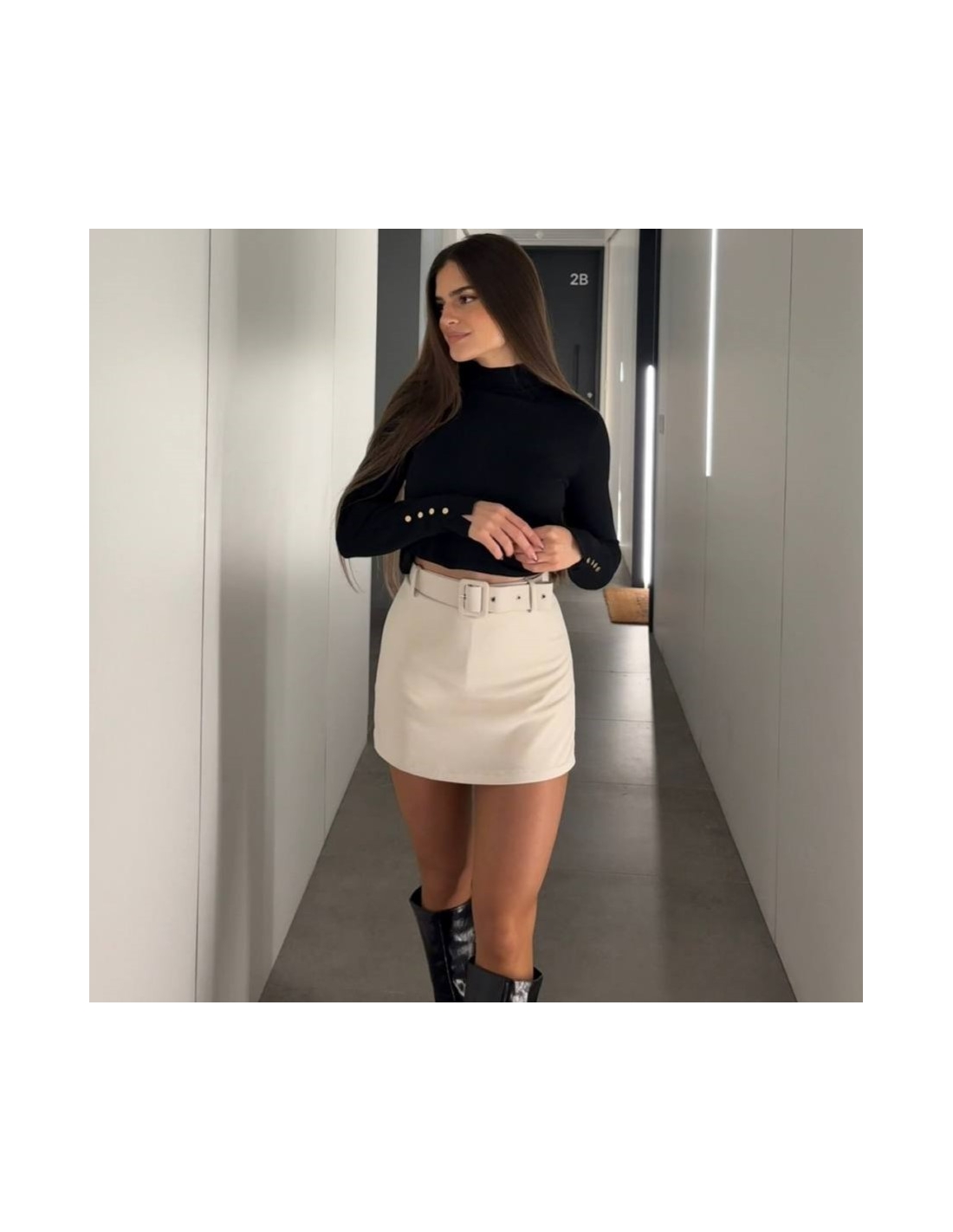 Falda pantalón de tiro alto con cinturón a tono. Elástica. Talla única