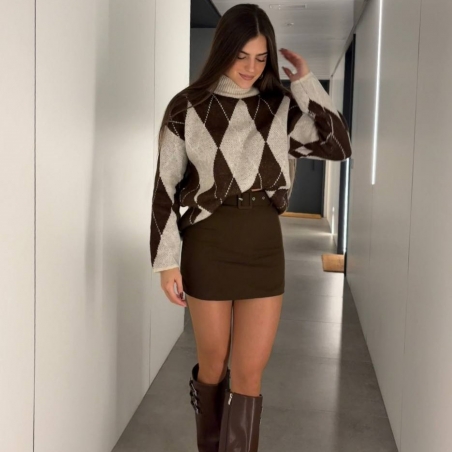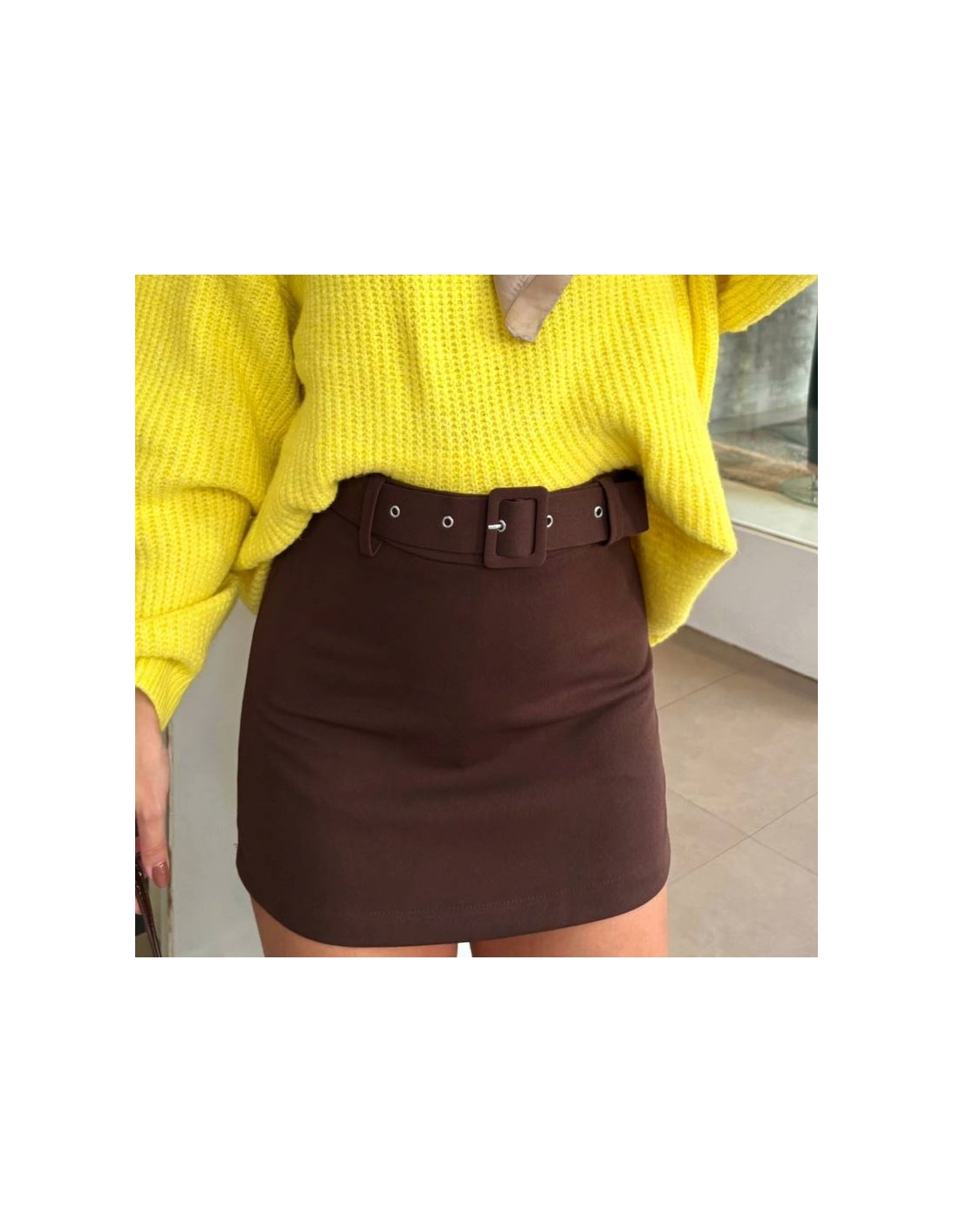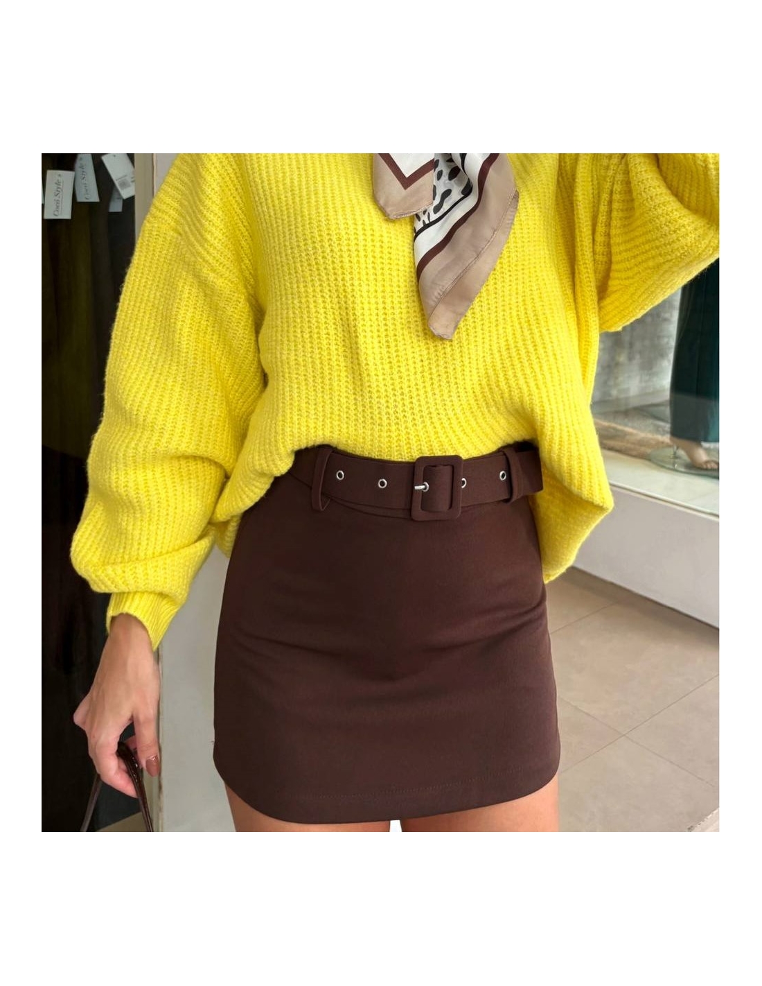 Falda pantalón de tiro alto. Con cinturón a tono. Elástica. Talla única