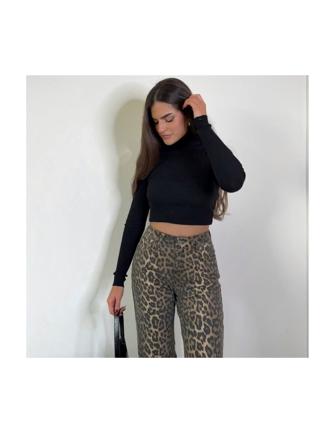 Jeans estampado animal print. Straight leg. Tiro alto.