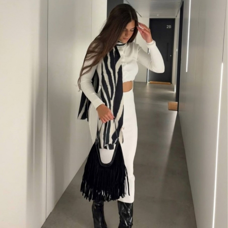 Conjunto punto blanco de jersey abotonado + falda. Talla única.
