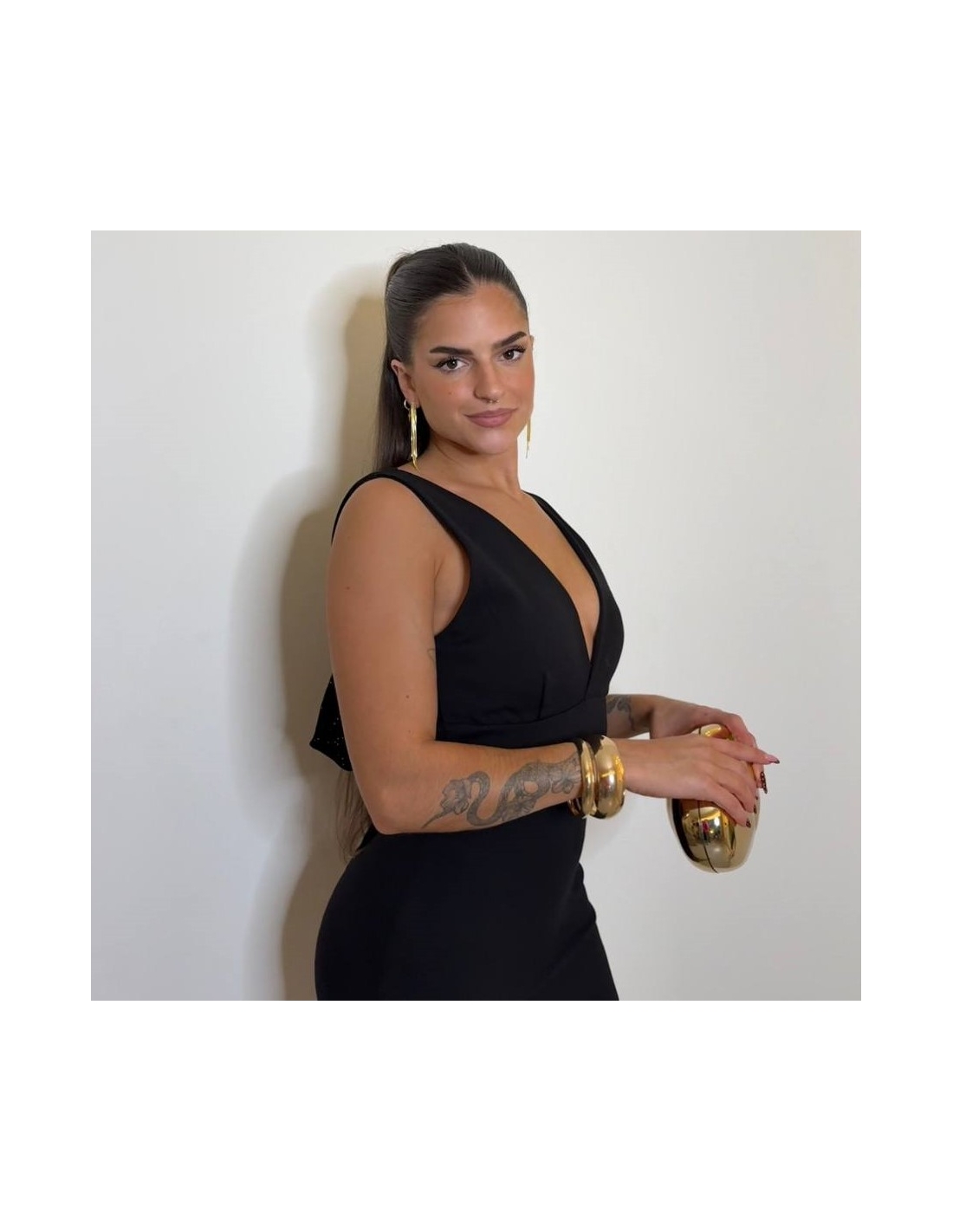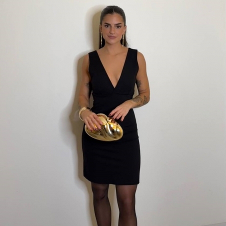 Vestido corto con lazo coquette en parte trasera. Casco incorporado en la zona el pecho. Talla única