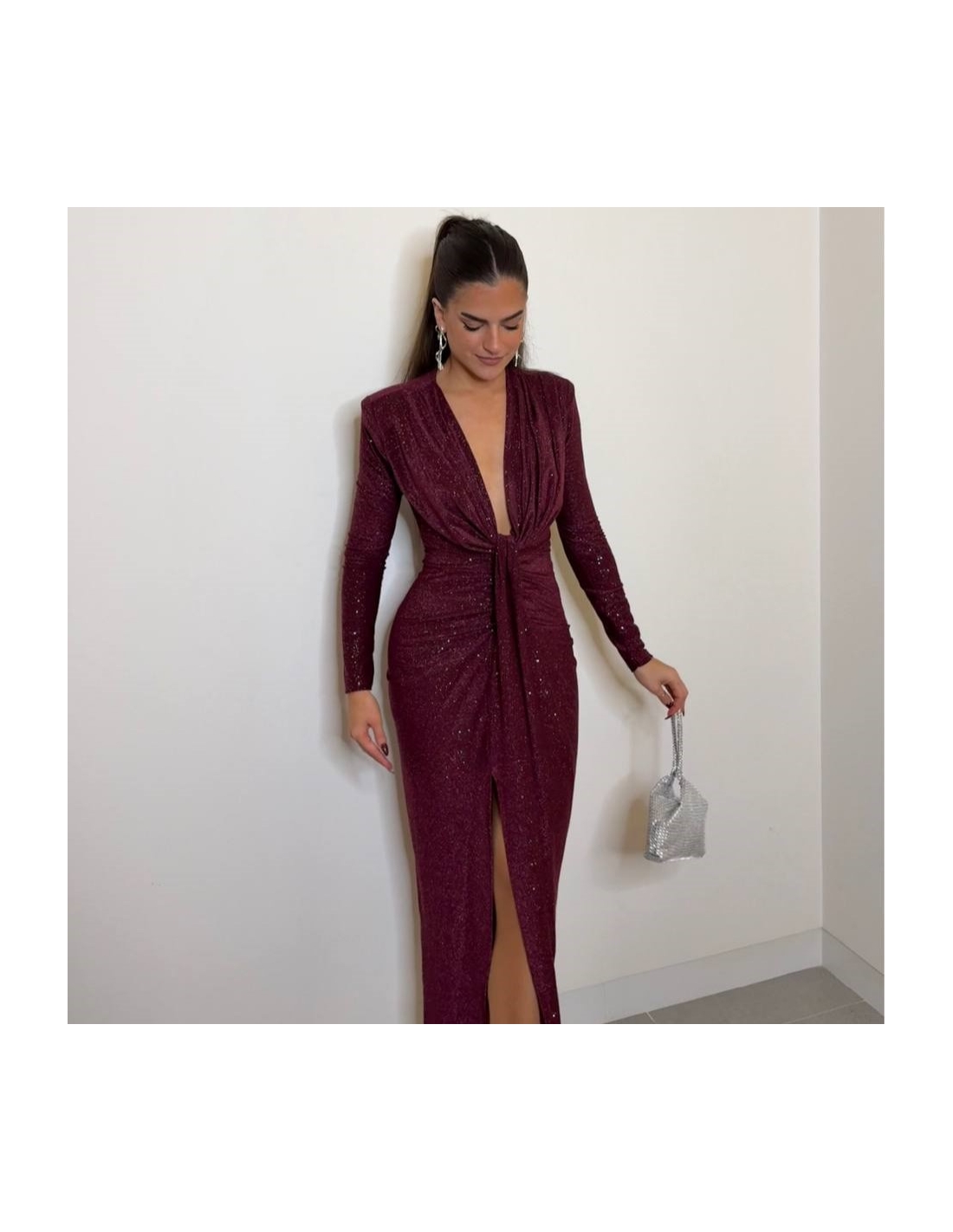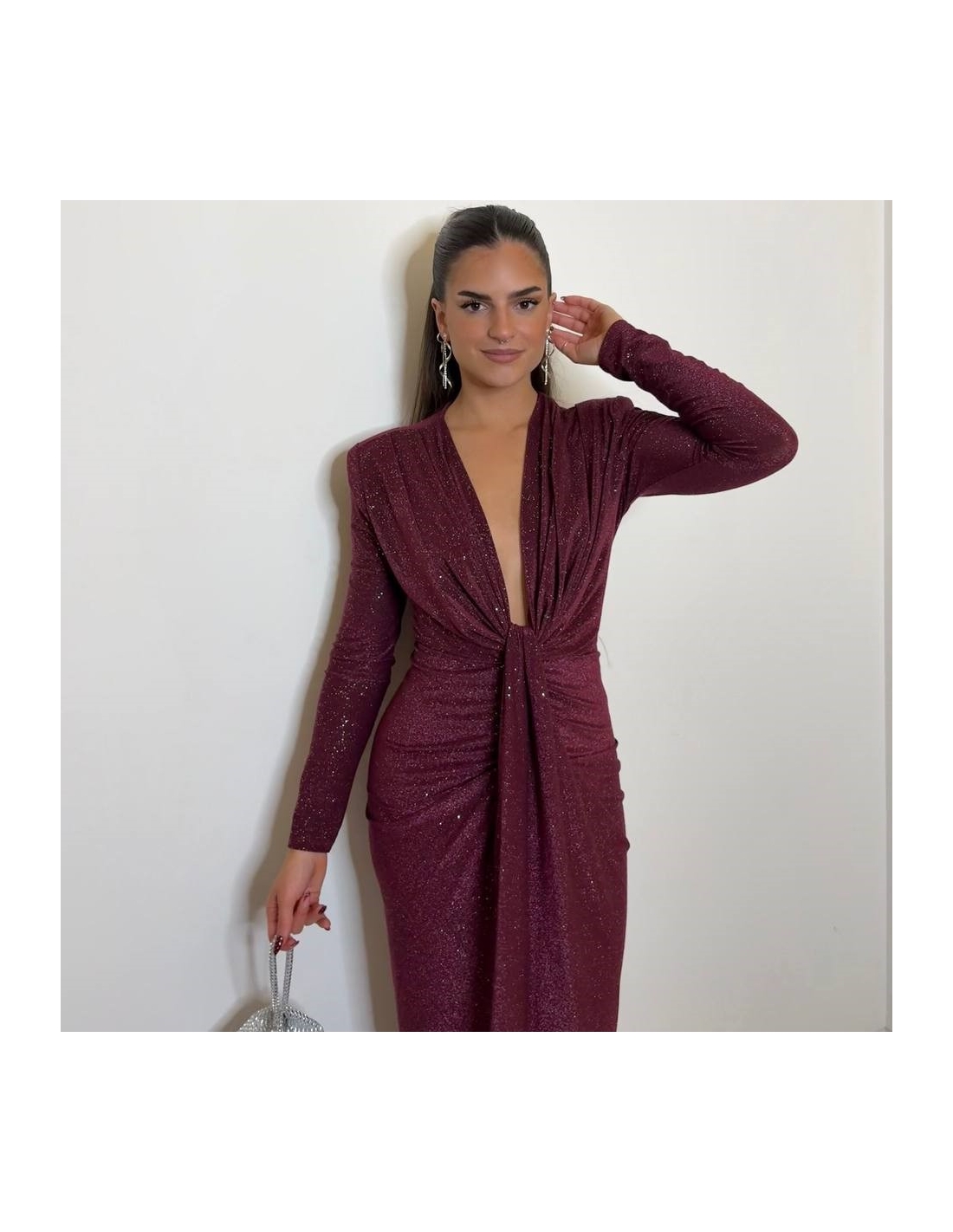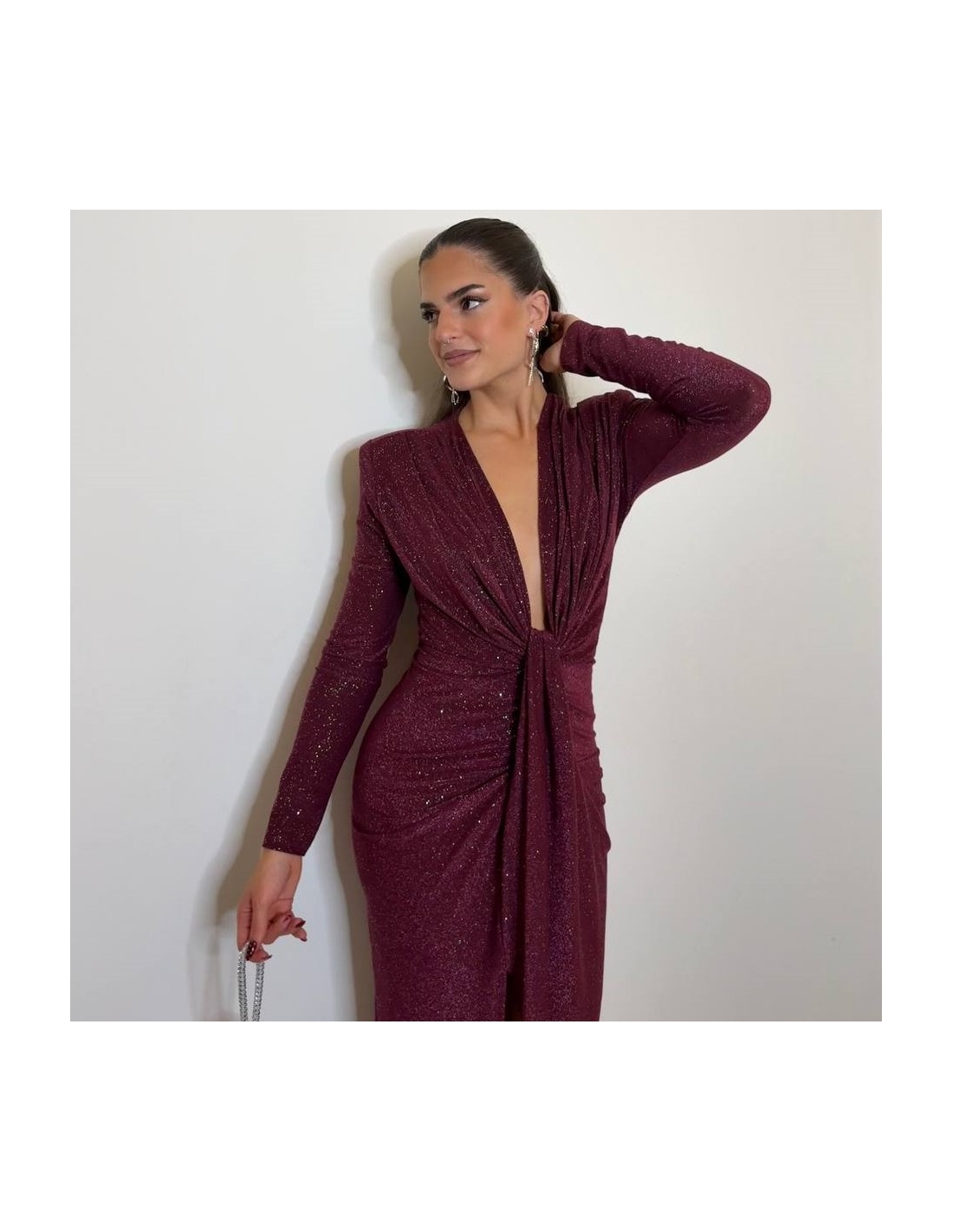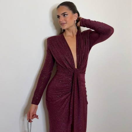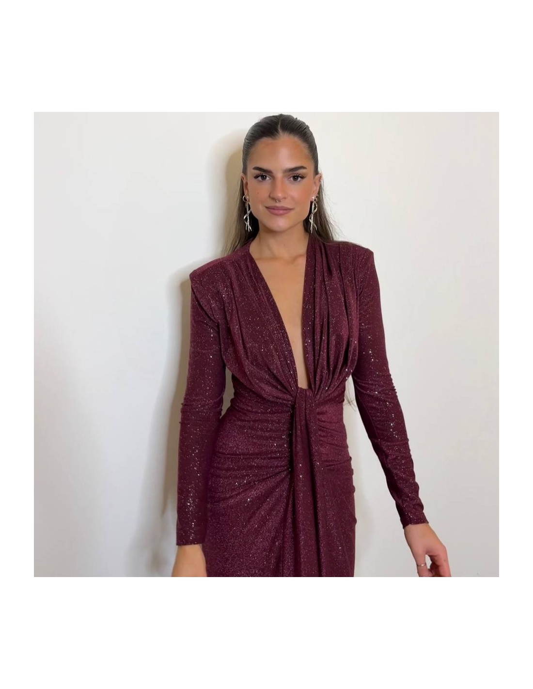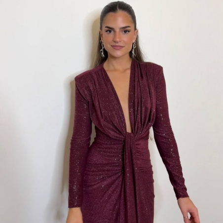Vestido nudo de tejido lurex. Hombreras. Fruncido delantero. Talla única.