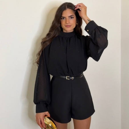 Mono corto combinado tachas tul. Cinturón incluído. Talla única.