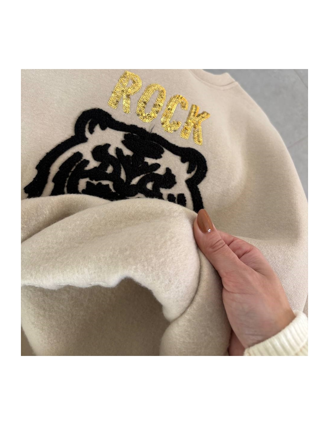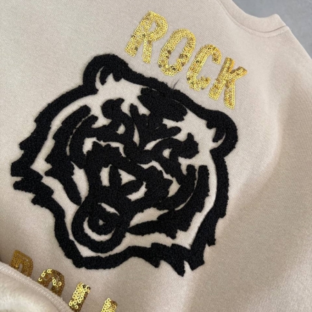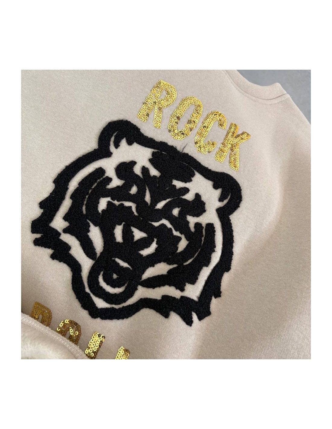 Sudadera gris con estampado. De manga larga. Cuello redondo. Con pelito en interior. Talla única