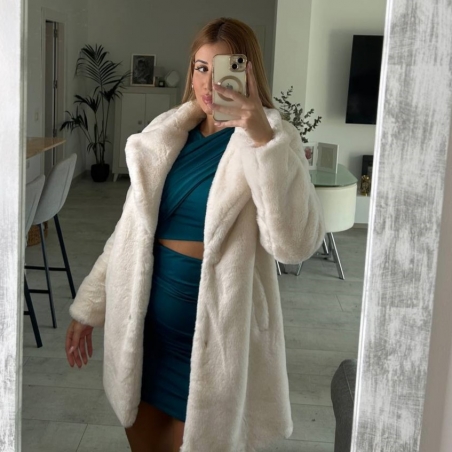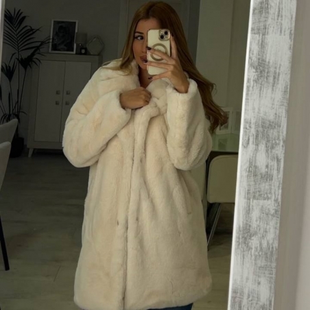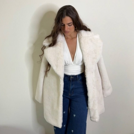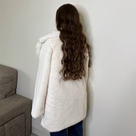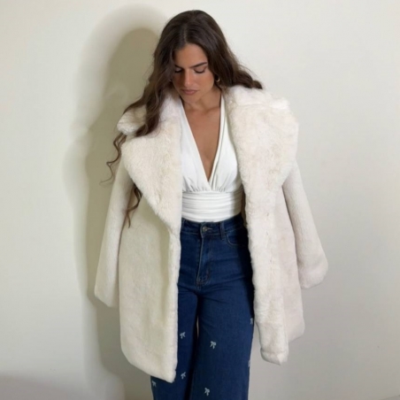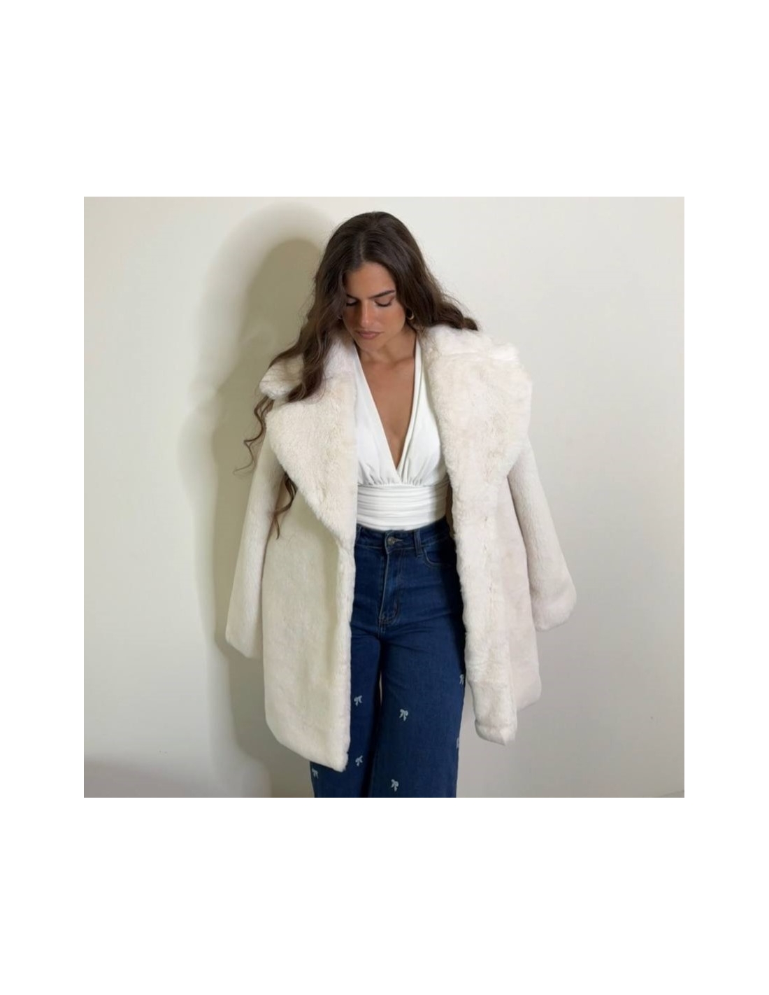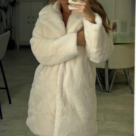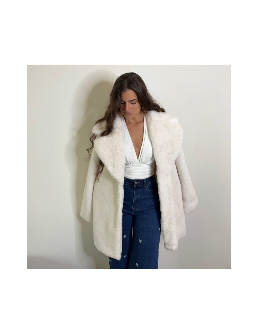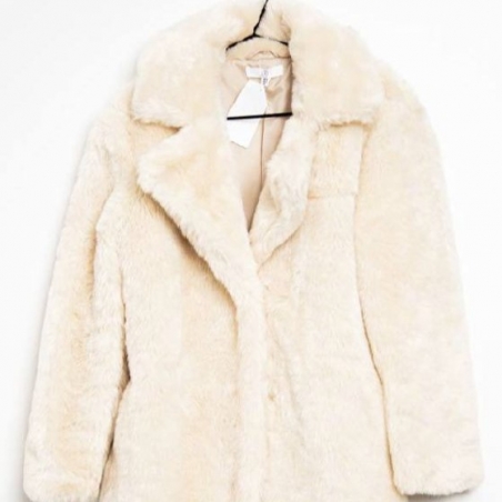 Abrigo de pelito crema con forro interior a tono. Cuello de solapa. Cierre delantero con botón. Talla única.